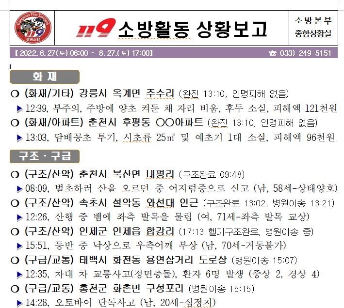 119 소방활동 상황보고(8. 27. 토) 17:00