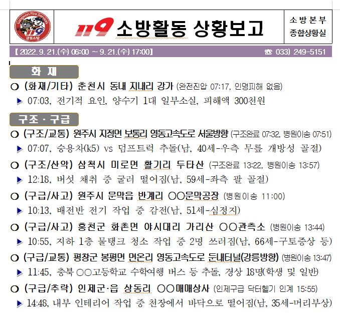 119 소방활동 상황보고(9. 21. 수) 17:00