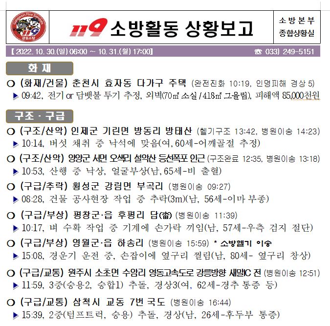 119 소방활동 상황보고(10. 31. 월) 17:00