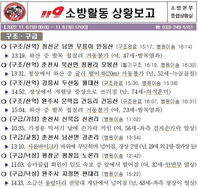 119 소방활동 상황보고(11. 6. 일) 17:00