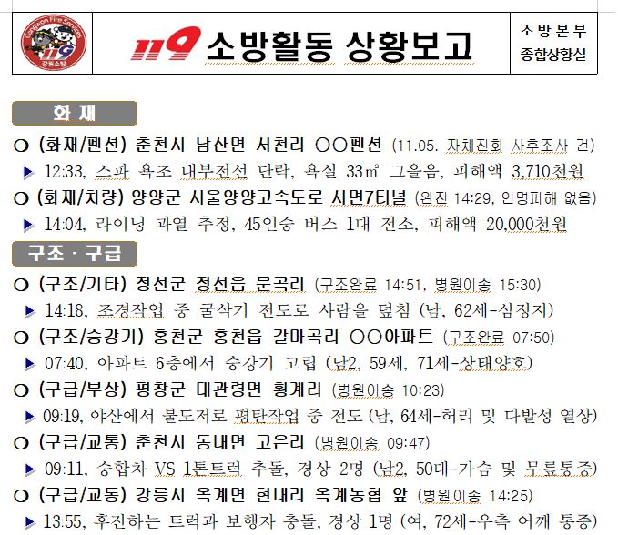 119 소방활동 상황보고(11. 8. 화) 06:00
