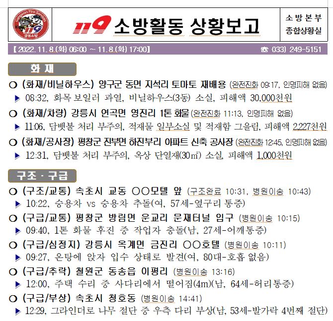 119 소방활동 상황보고(11. 08. 화) 17:00