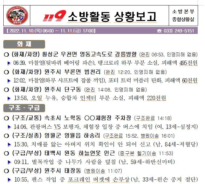 119 소방활동 상황보고(11. 11. 금) 17:00