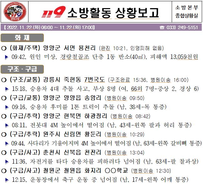 119 소방활동 상황보고(11. 22. 화) 17:00