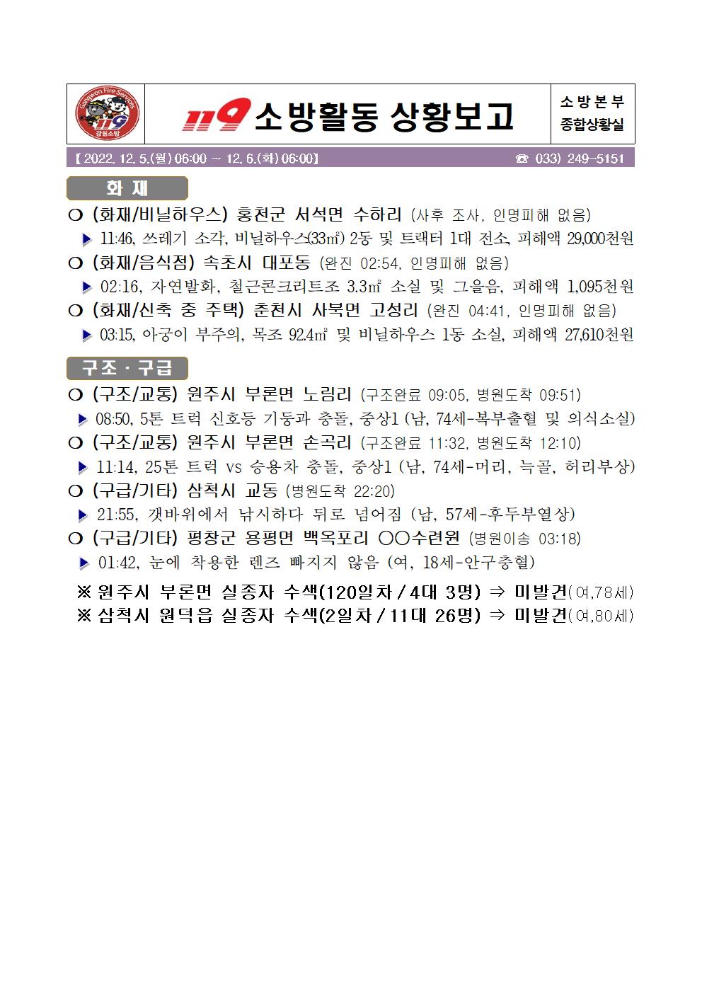 119 소방활동 상황보고(12. 06. 화) 06:00