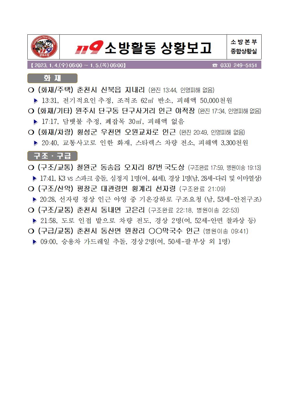 119 소방활동 상황보고(1. 5. 목) 06:00