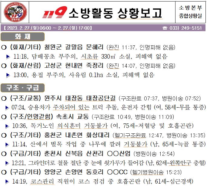 119 소방활동 상황보고(2. 27. 월) 17:00