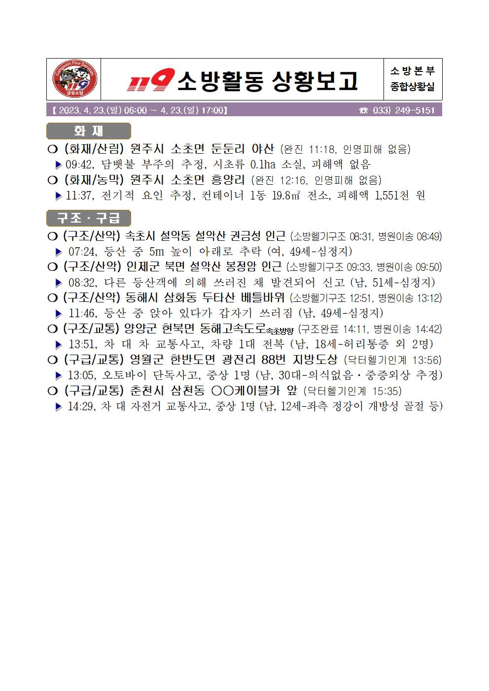 119 소방활동 상황보고(4. 22. 일) 17:00