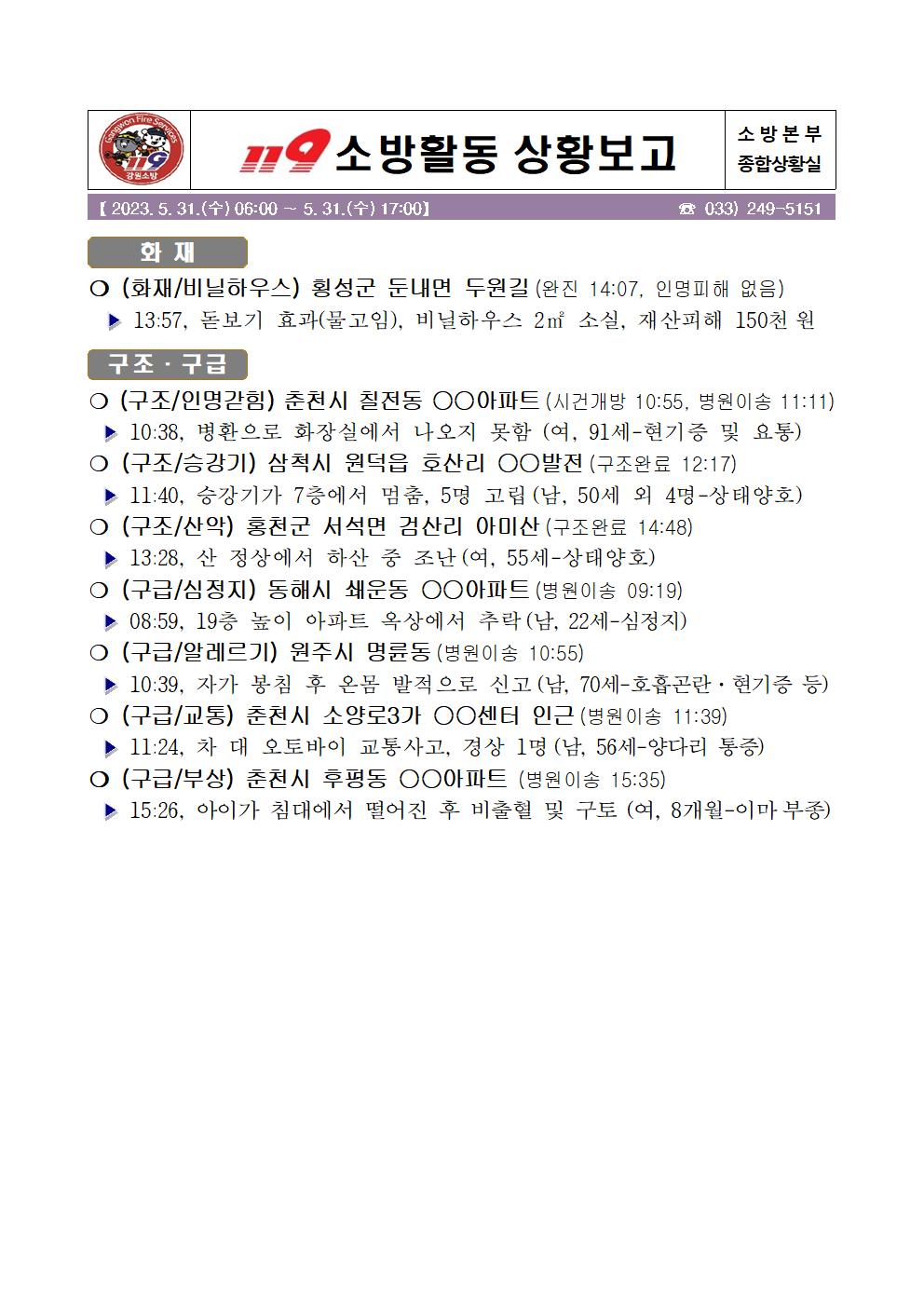 119 소방활동 일일상황보고(5.31.수) 06:00