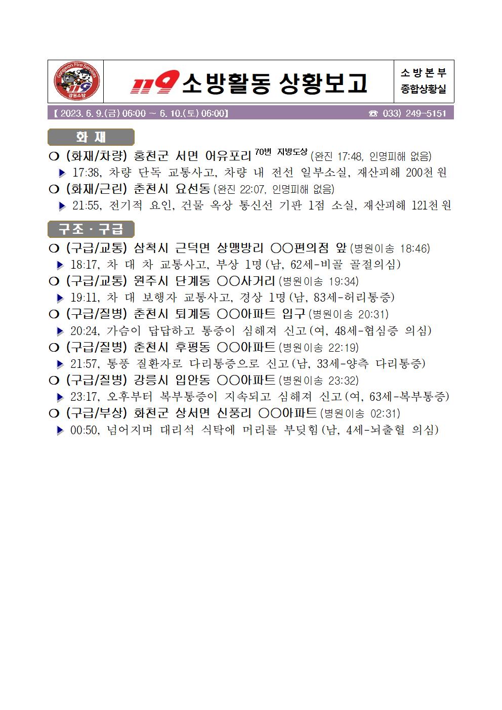 119 소방활동 일일상황보고(6. 10. 토) 06:00