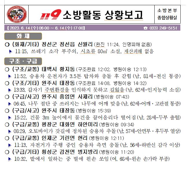 119 소방활동 일일상황보고(6.14.수) 17:00