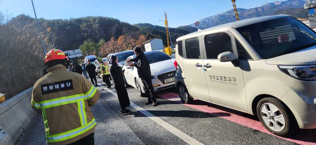 양양고속도로 양양 분기점 인근 8중 추돌사고 관련 사진 2점