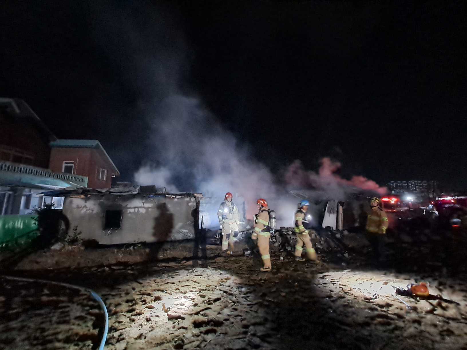 강릉 주문진읍 신영초등학교 인근 농자재 보관 창고 화재- 사진 2점