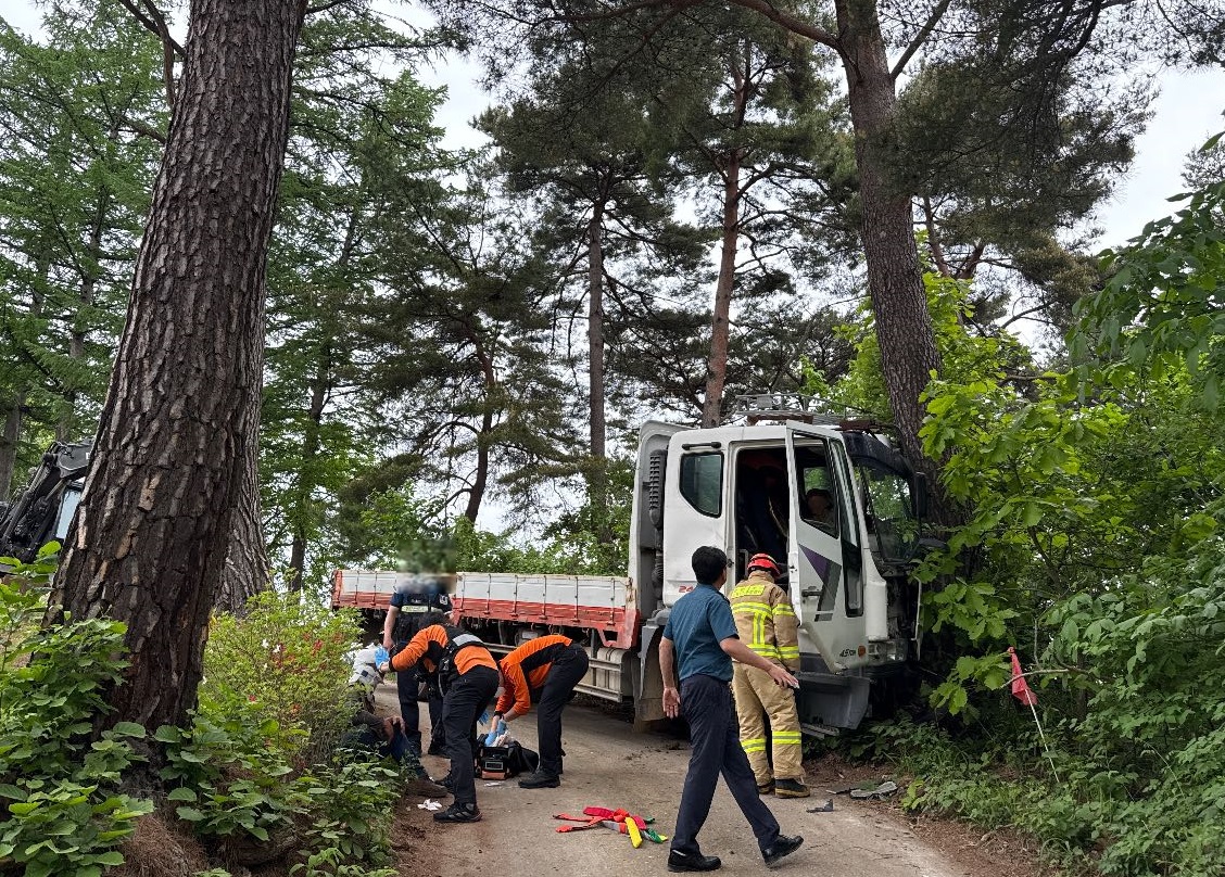 영월 산솔면 임도 트럭 단독사고 현장 사진