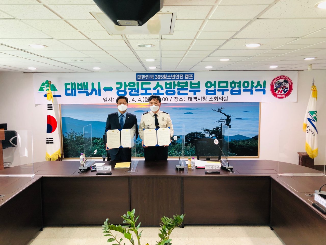 강원소방본부 태백시와 대한민국 청소년 안전캠프 협약식 가져