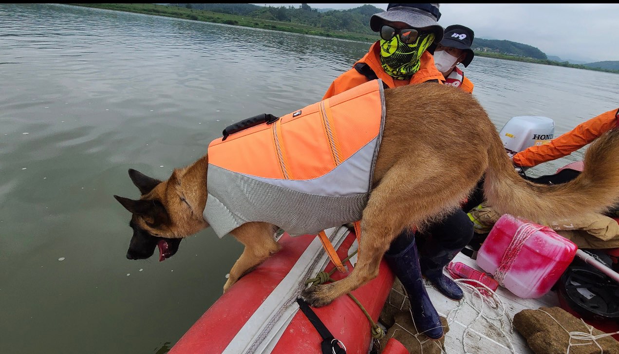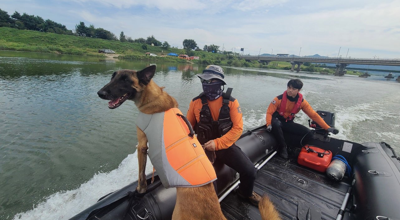 평창강 실종자 수난탐지견(파도)이 발견해 수습
