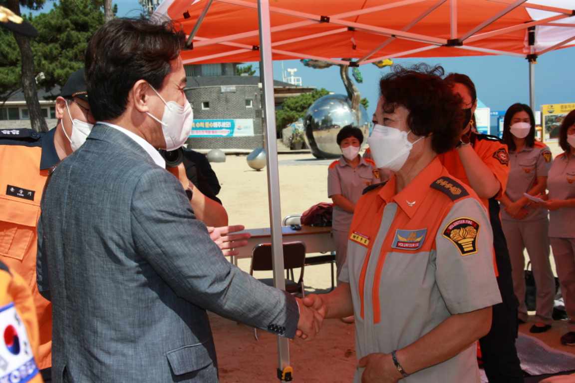 김진태 도지사, 경포해수욕장 119수상구조대원 격려
