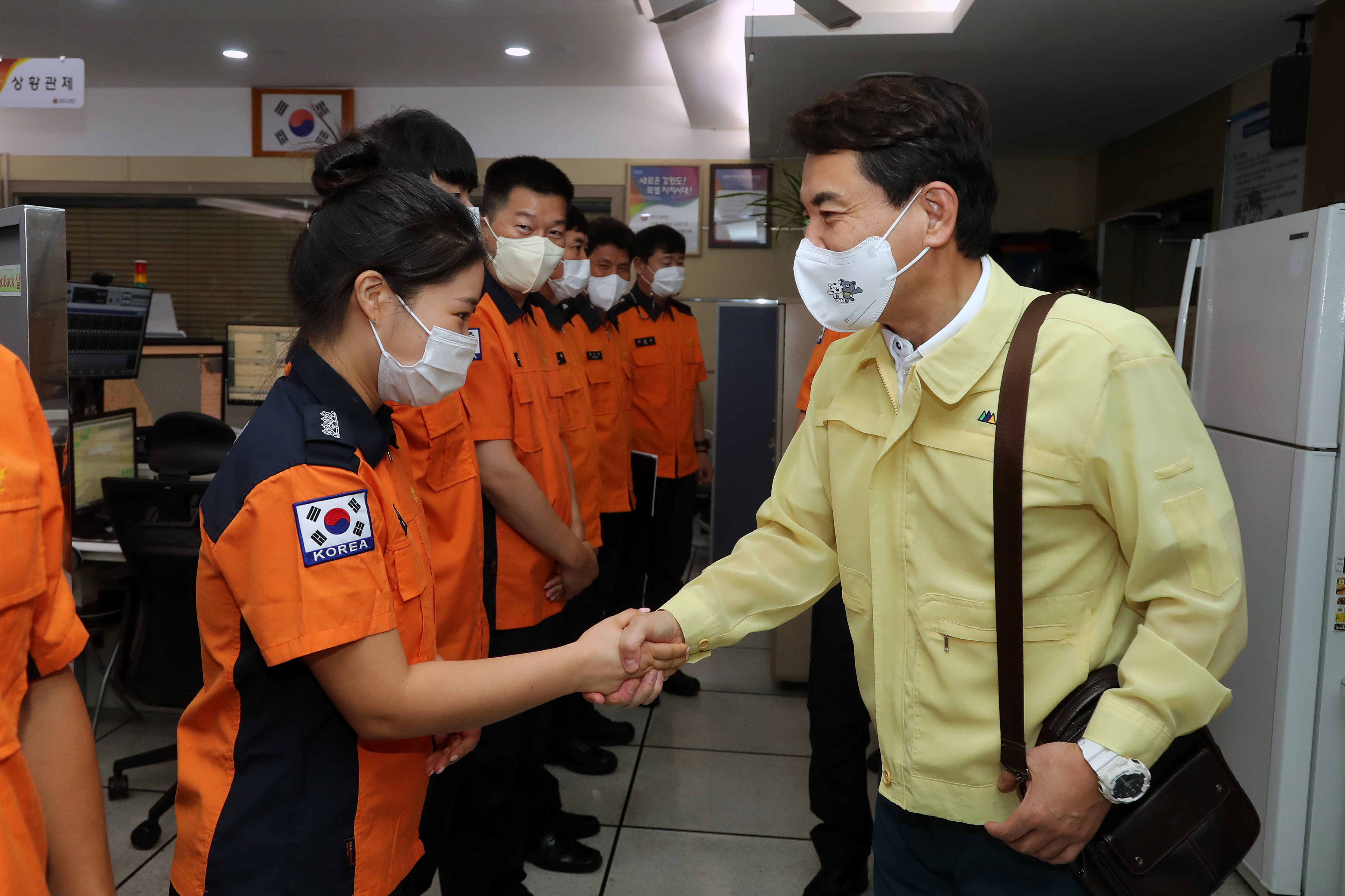 김진태 강원도지사, 비상근무 중인 119 종합상황실 찾아 격려