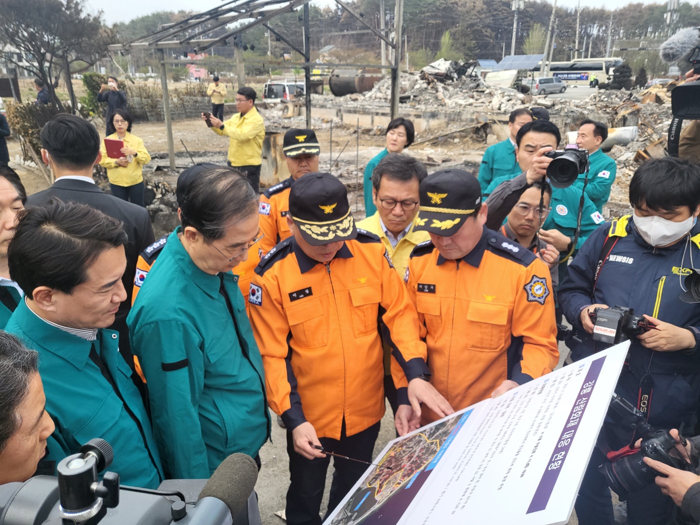 이일 본부장, 한덕수 국무총리 강릉화재 현장 방문 상황설명