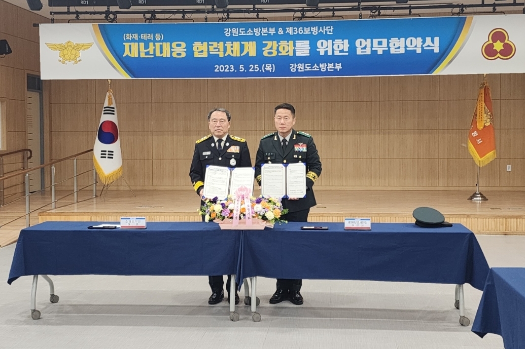 강원소방본부, 36사단과 대형재난 대응 협력을 위한 업무협약식 개최