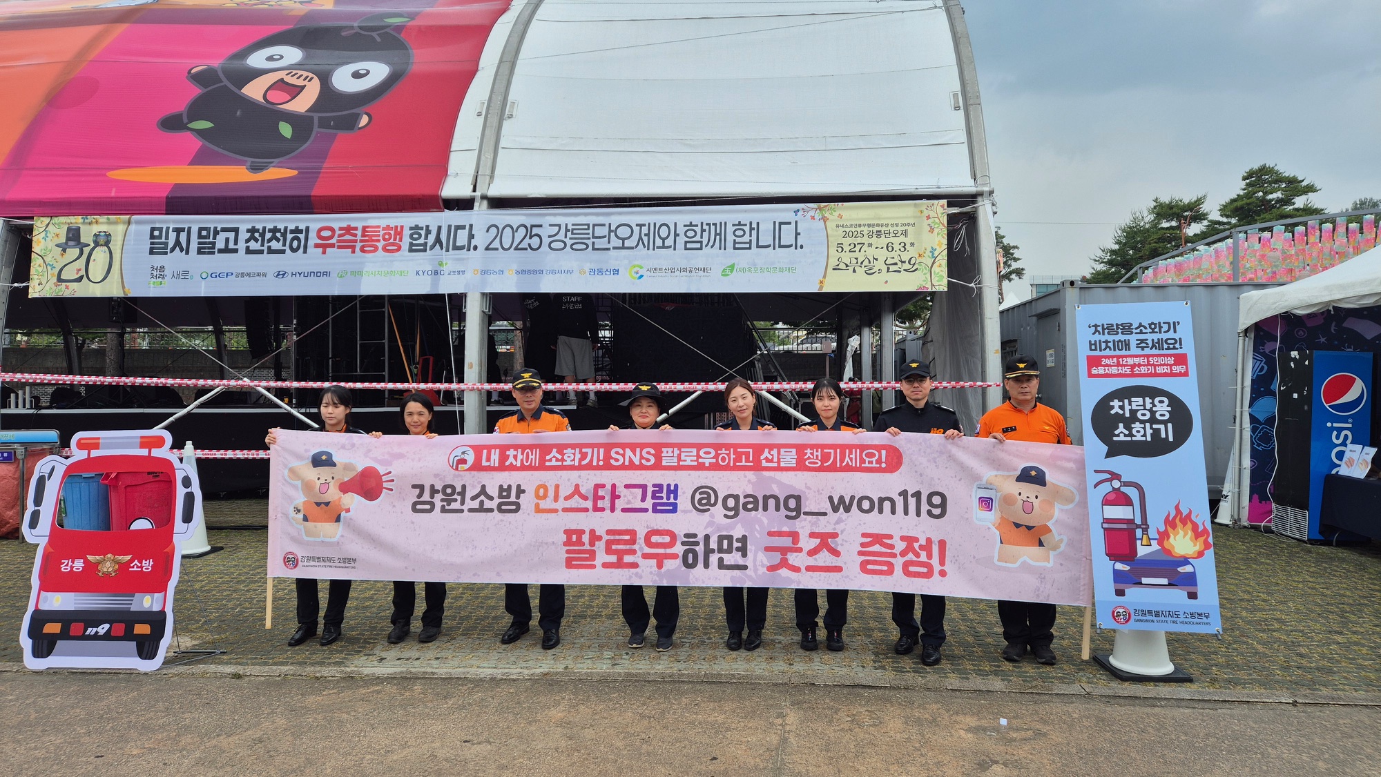 강릉 단오제 현장서 차량용 소화기 의무화 캠페인 펼쳐...