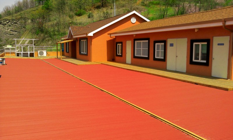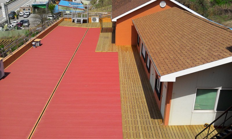 옥상에 나즈막하게 지붕을 씌우는 공법을 택하였습니다.