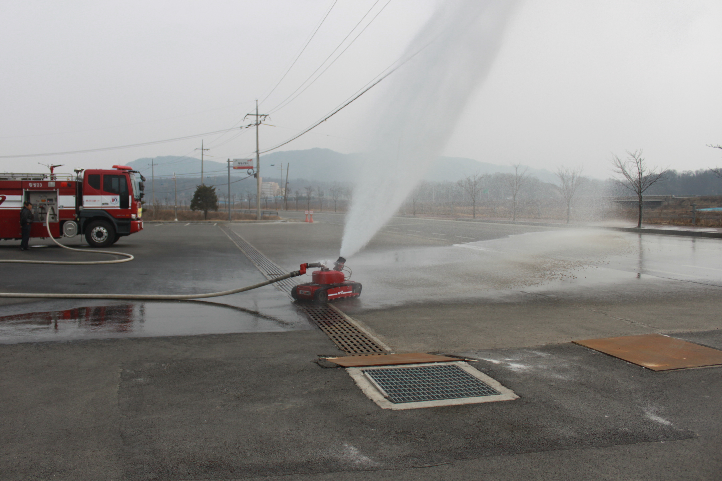 강원소방 화재진압용 무인방수 로봇 배치