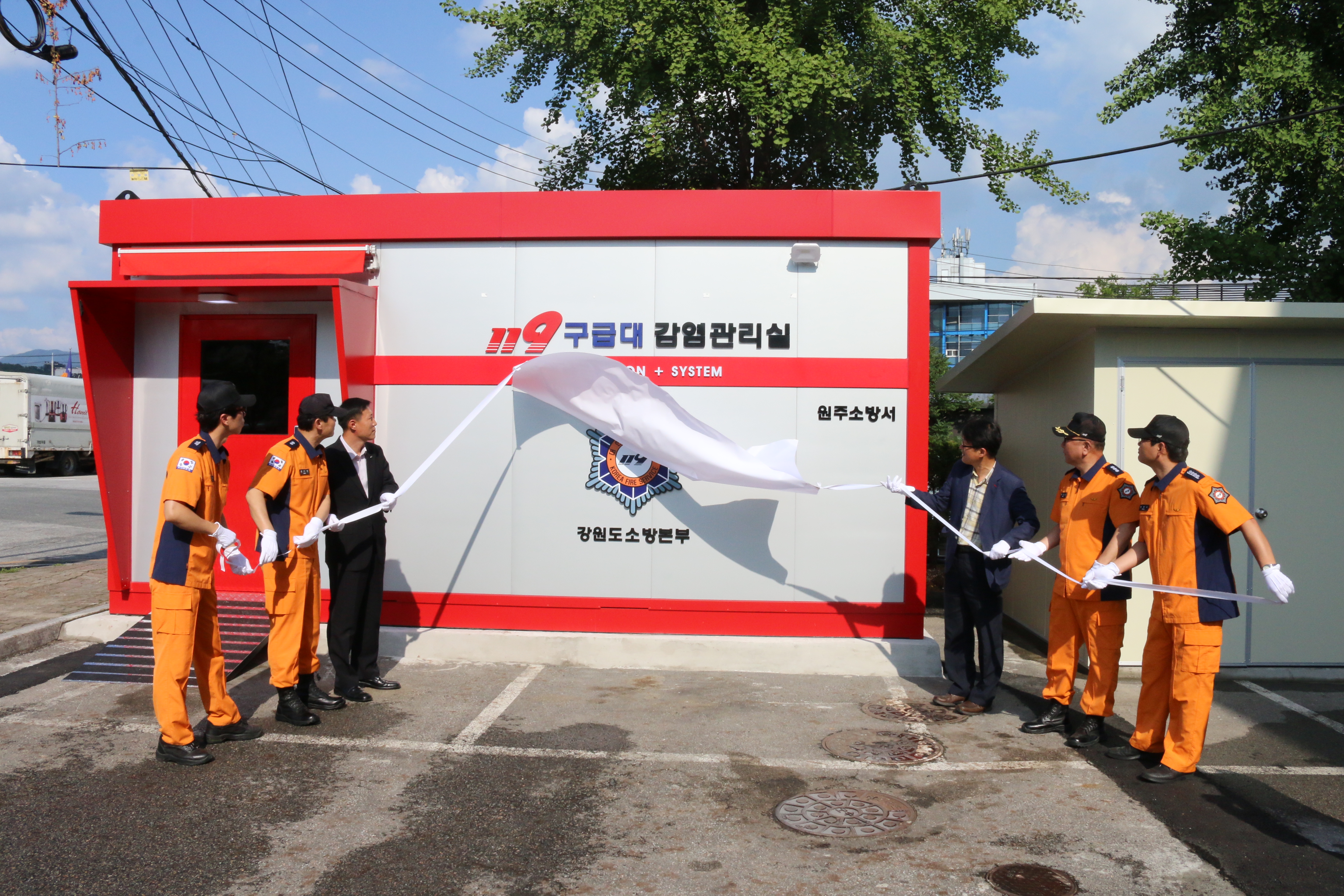 강원도소방본부(본부장 이흥교)는 12일 오후 2시 원주소방서 우산119안전센터에서 소방본부 방호구조과장, 원주소방서장 등이 참석한 가운데 119구급대 감염관리실 현판식 행사를 개최하였다.