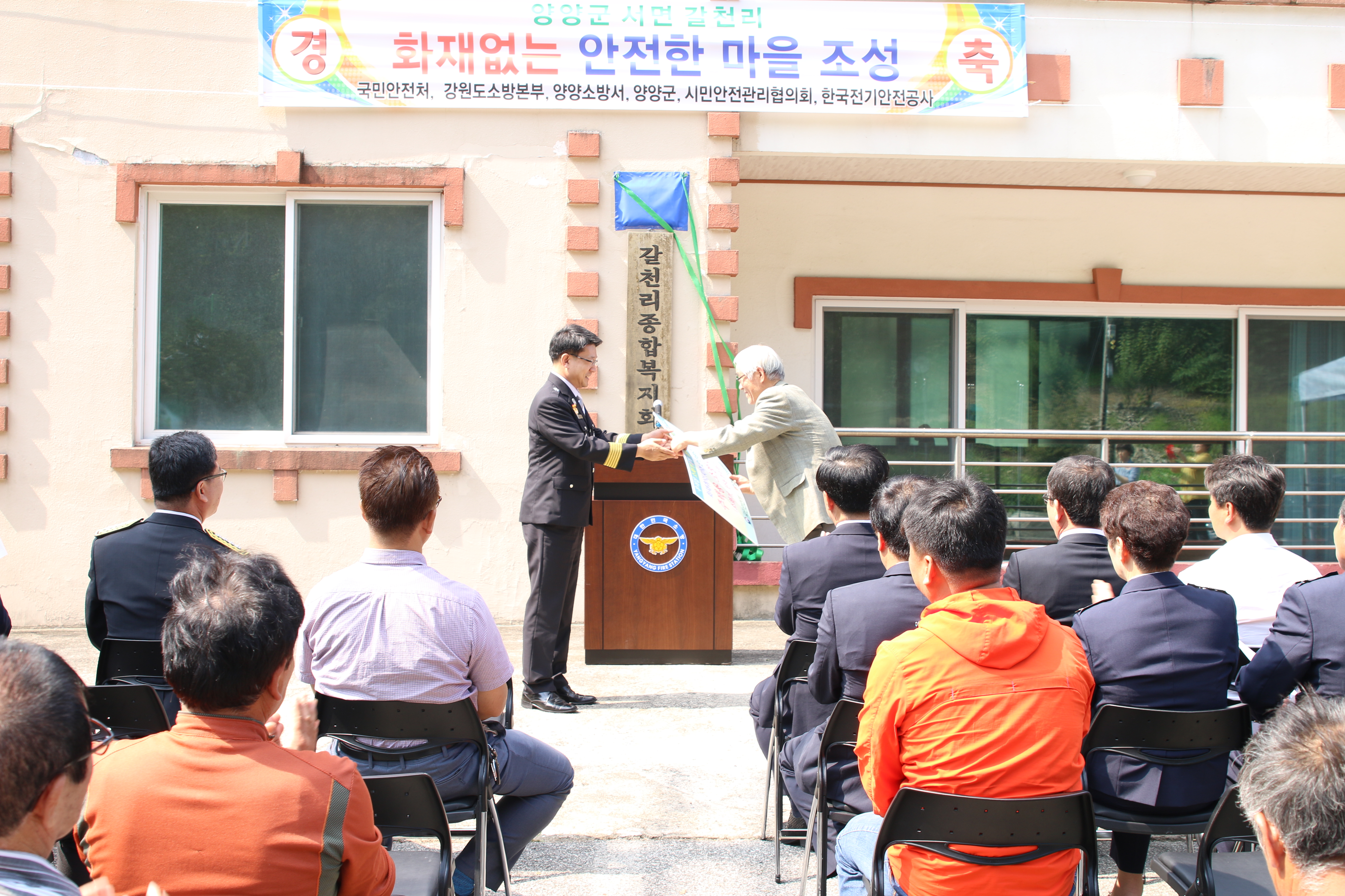 강원도소방본부(본부장 이흥교)는 1일 오전 10시 30분 양양군 서면 갈천리 마을회관에서 ‘화재 없는 안전마을’ 지정 행사를 개최하였다.