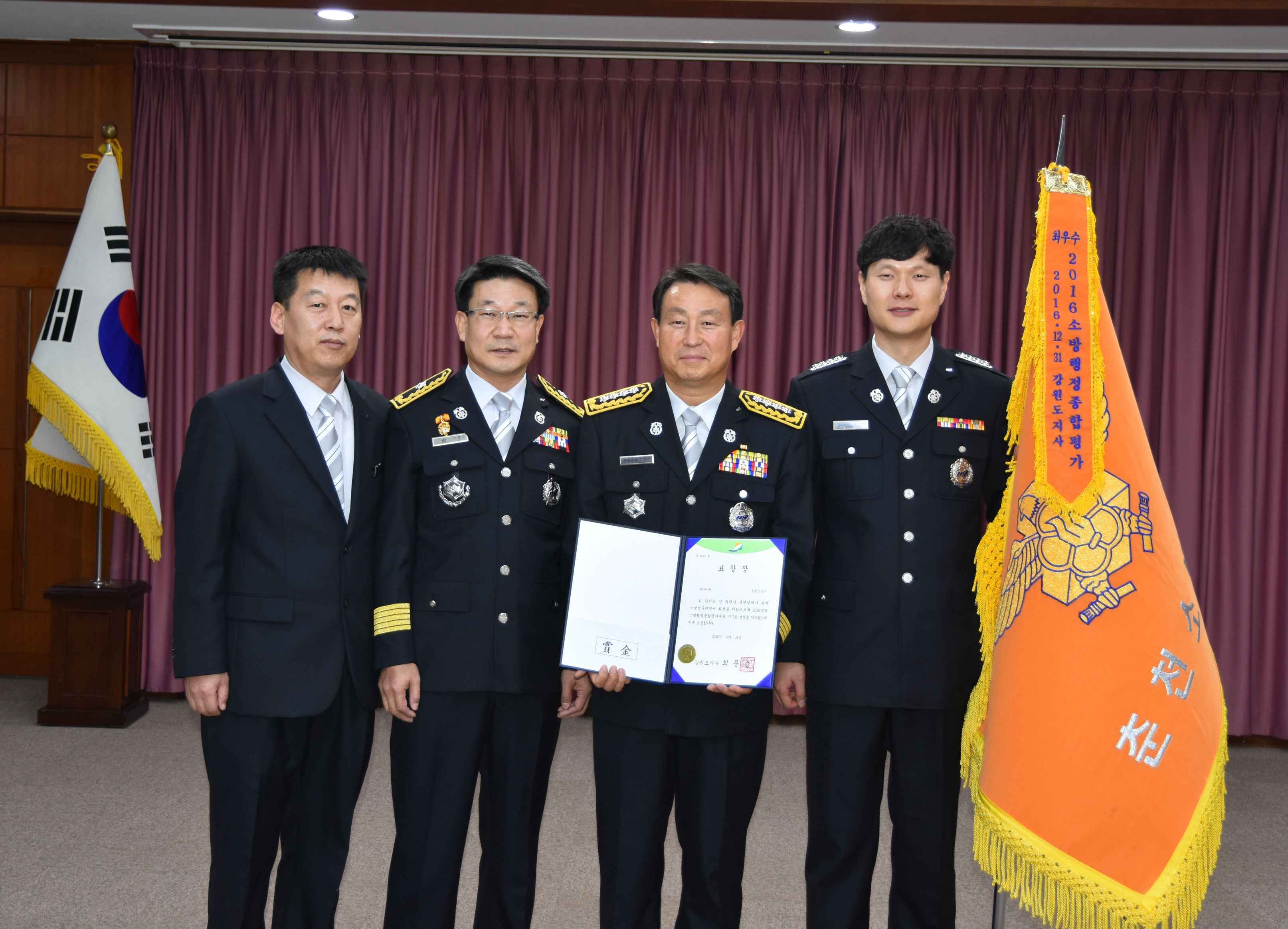 강원도소방본부(본부장 이흥교)는 2016년도 소방행정종합평가 및 긴급구조종합훈련 분야에서 우수한 업무를 수행한 소방서에 대한 강원도지사 표창 시상식을 12월 26일 도청 신관2층 소회의실에서 개최하였다.