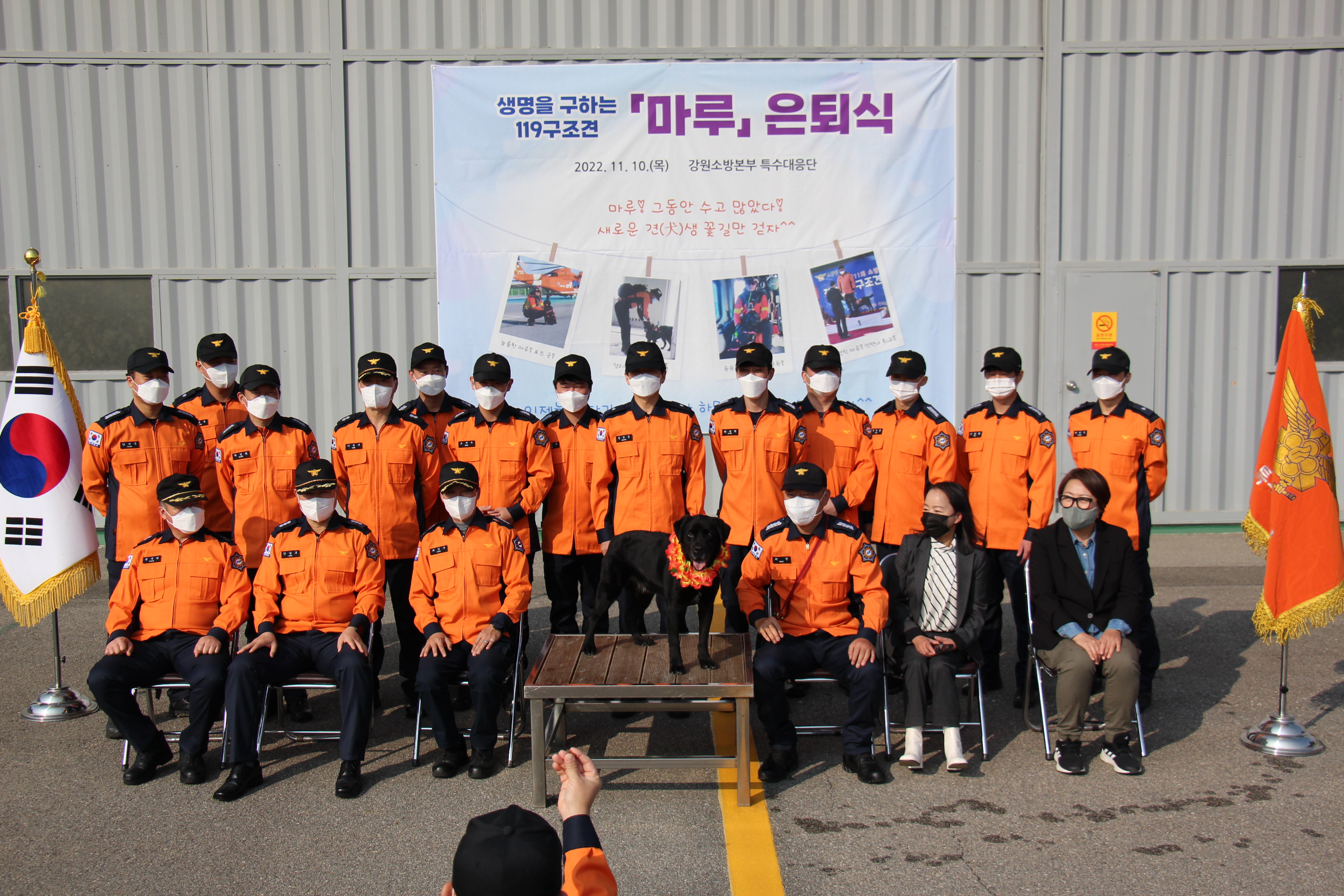 강원소방, 119인명구조견 '마루' 은퇴식 가져