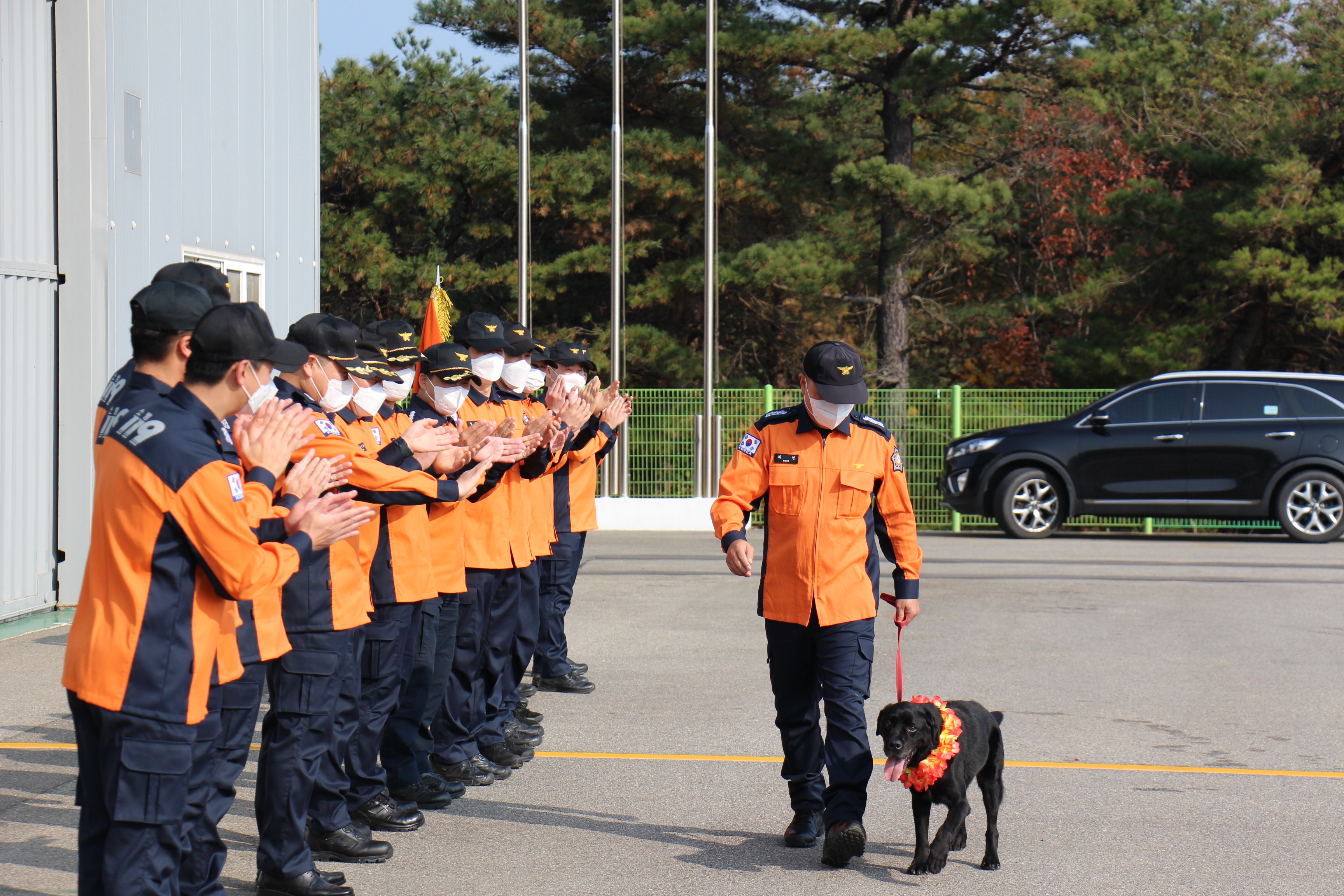 ○ 이날 행사에는 최임수 특수대응단장과 김영희 한국애견협회강원지회장 등이 참여한 가운데‘임무종료 구조견조끼 벗기, 꽃목걸이와 공로패 수여’등에 이어 한국애견협회의 평생사료권이 증정됐다.