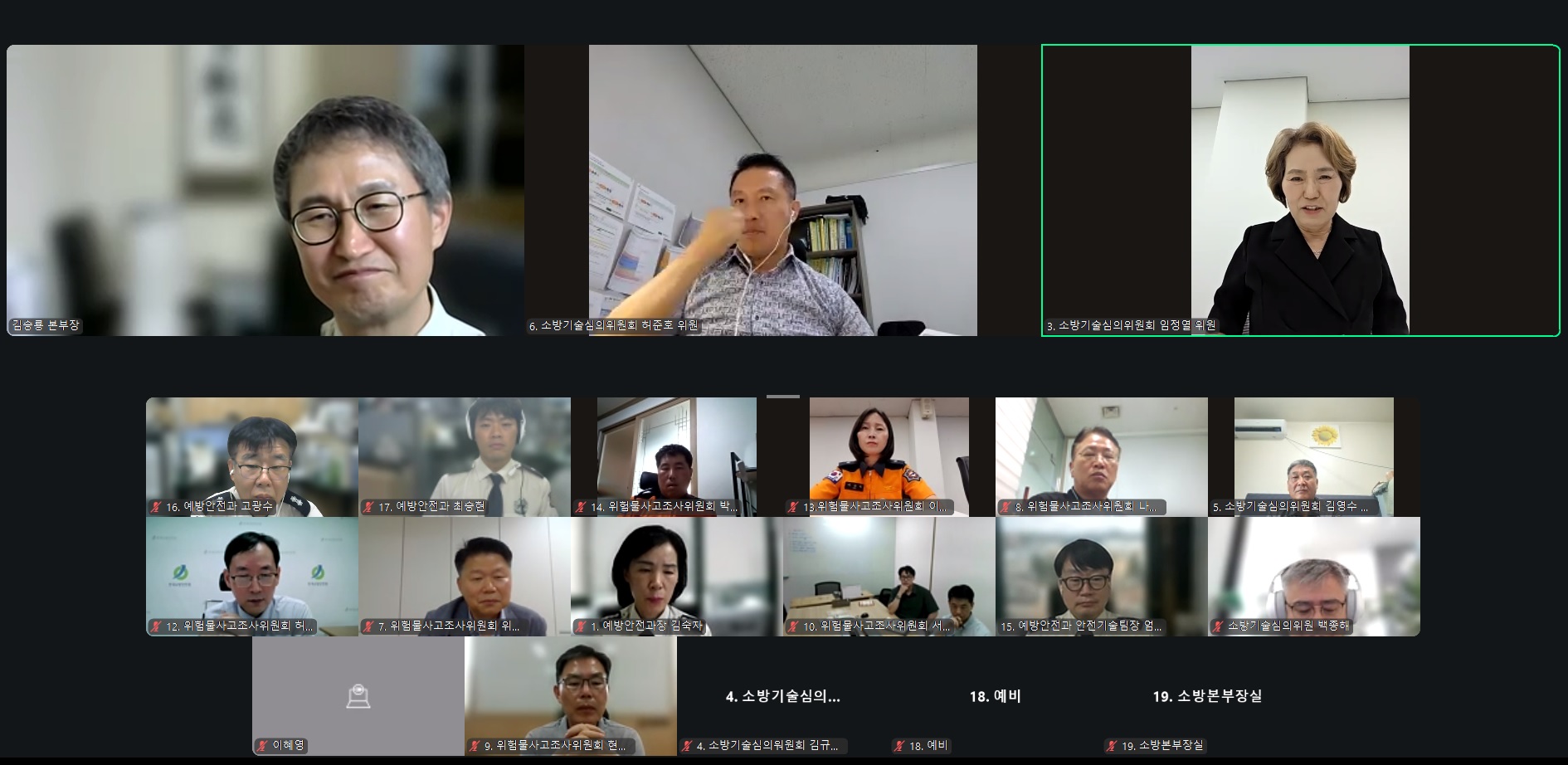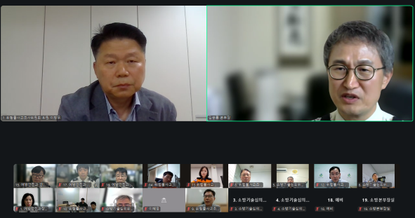 ○ 강원특별자치도 소방본부(본부장 김승룡)는 29일 AI 기술 활용을 포함한 소방정책 제도 개선 방안을 논의하기 위해 15명의 각 분야 전문가와 소방본부 관계자가 참여하는 디지털 소통회의를 개최했다.