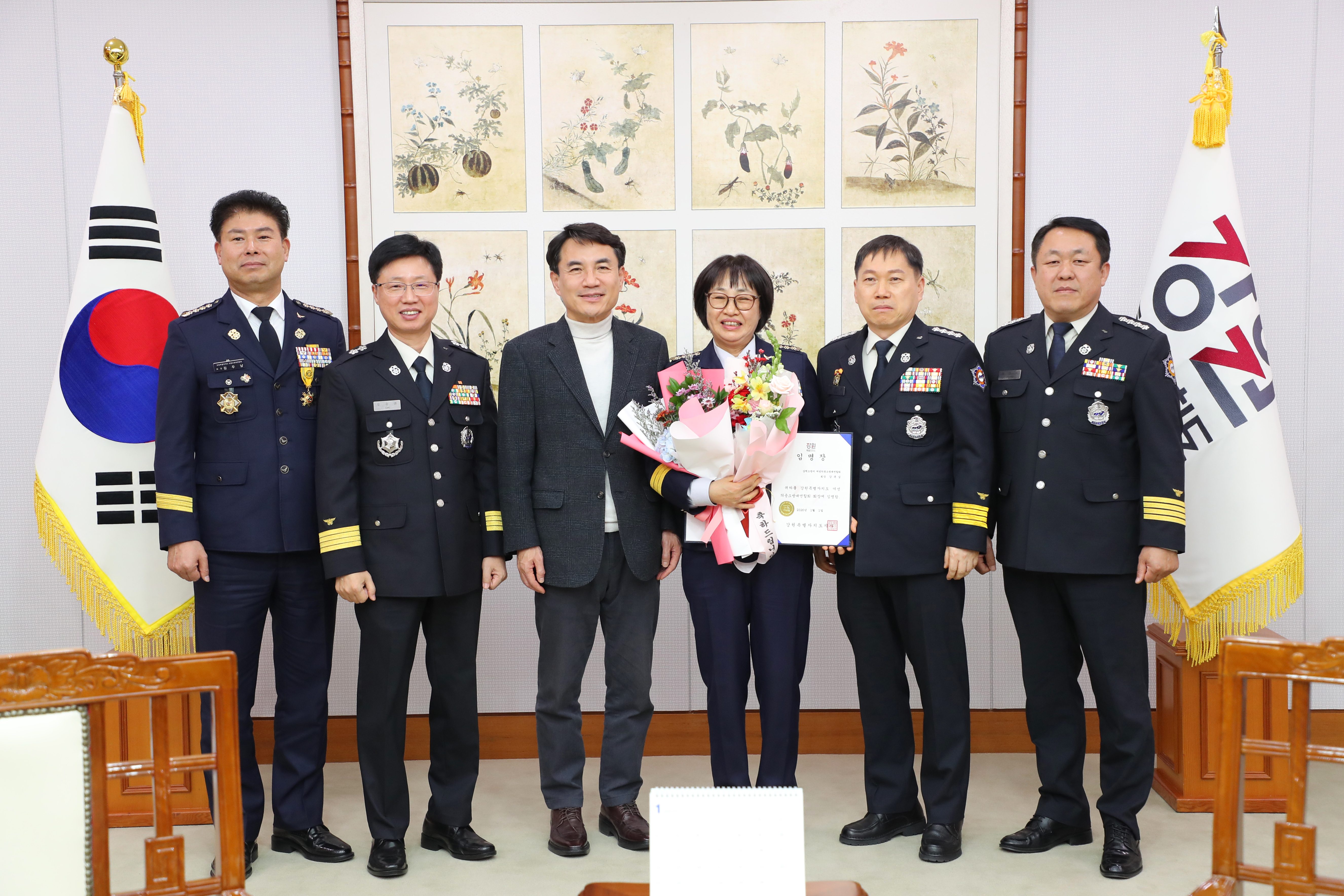 ○ 강원특별자치도 소방본부(본부장 오승훈)는 9일 도청 통상상담실에서 김진태 도지사가 참석한 가운데 신임 여성의용소방대연합회 임원 임명장 수여식을 개최했다.
