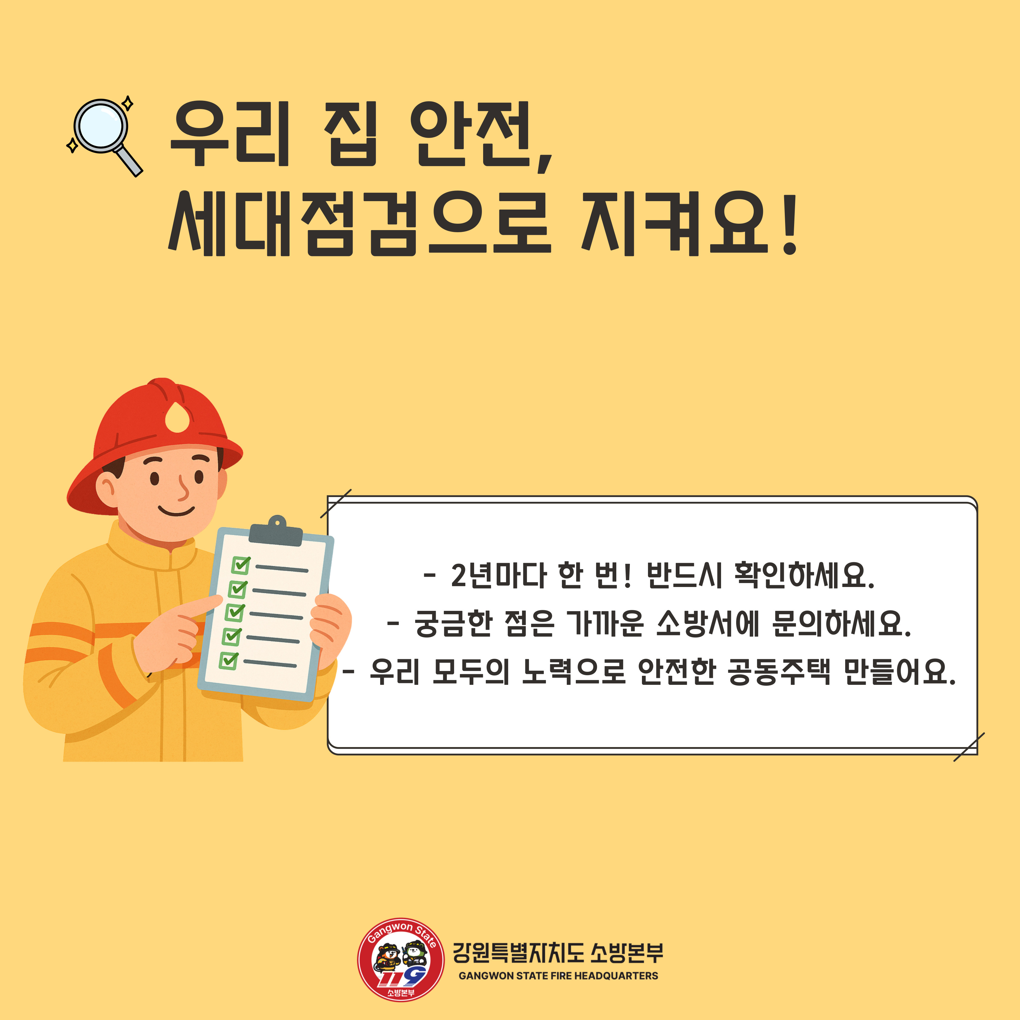 공동주택 소방안전관리자들께서는 세대점검 시 참고하시기 바랍니다.