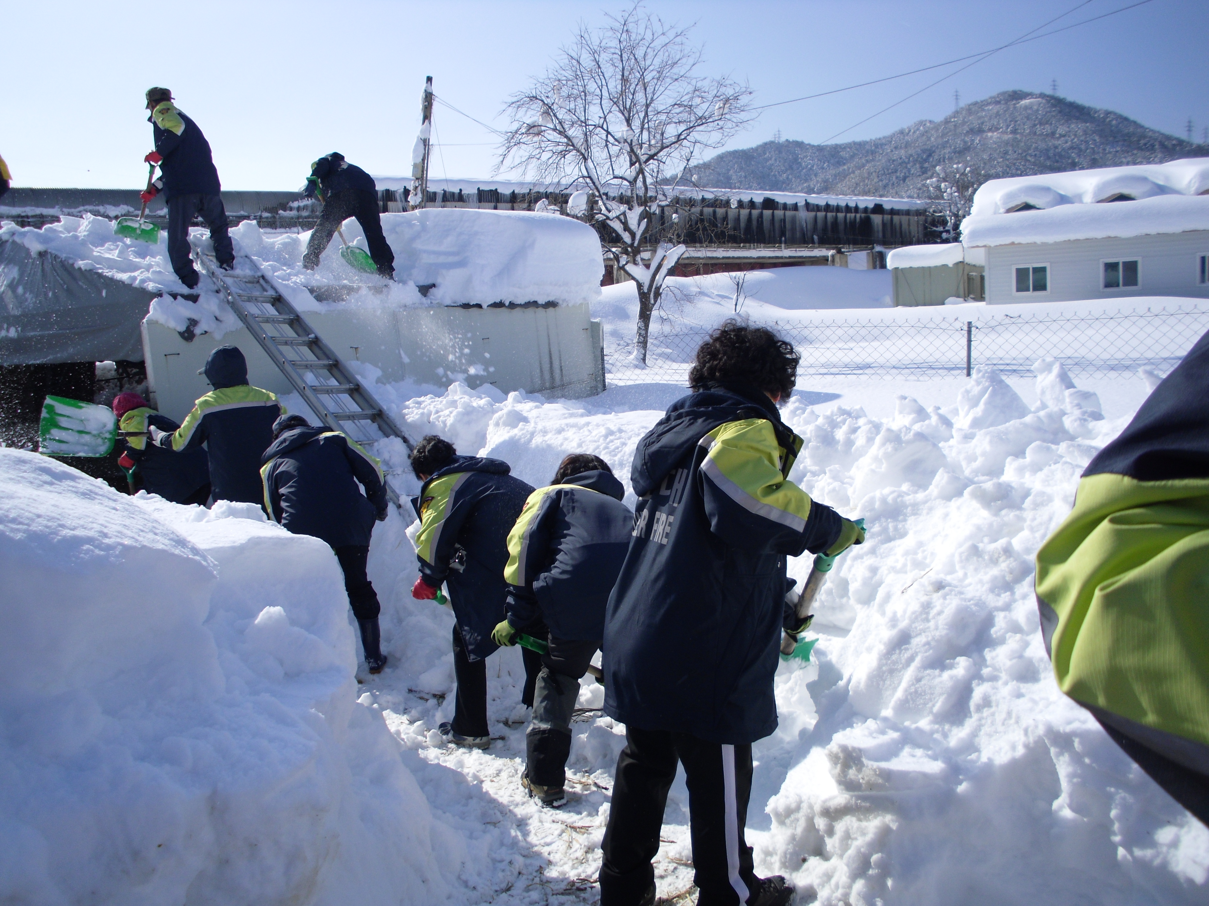 옥계낙풍리닭계장에 사료가 눈으로 공급되지못하여 내일 면사무소와함께 제설작업을 오전10시부터할계획입니다 연일제설작업에 고생하는 우리대원들 화 이 팅