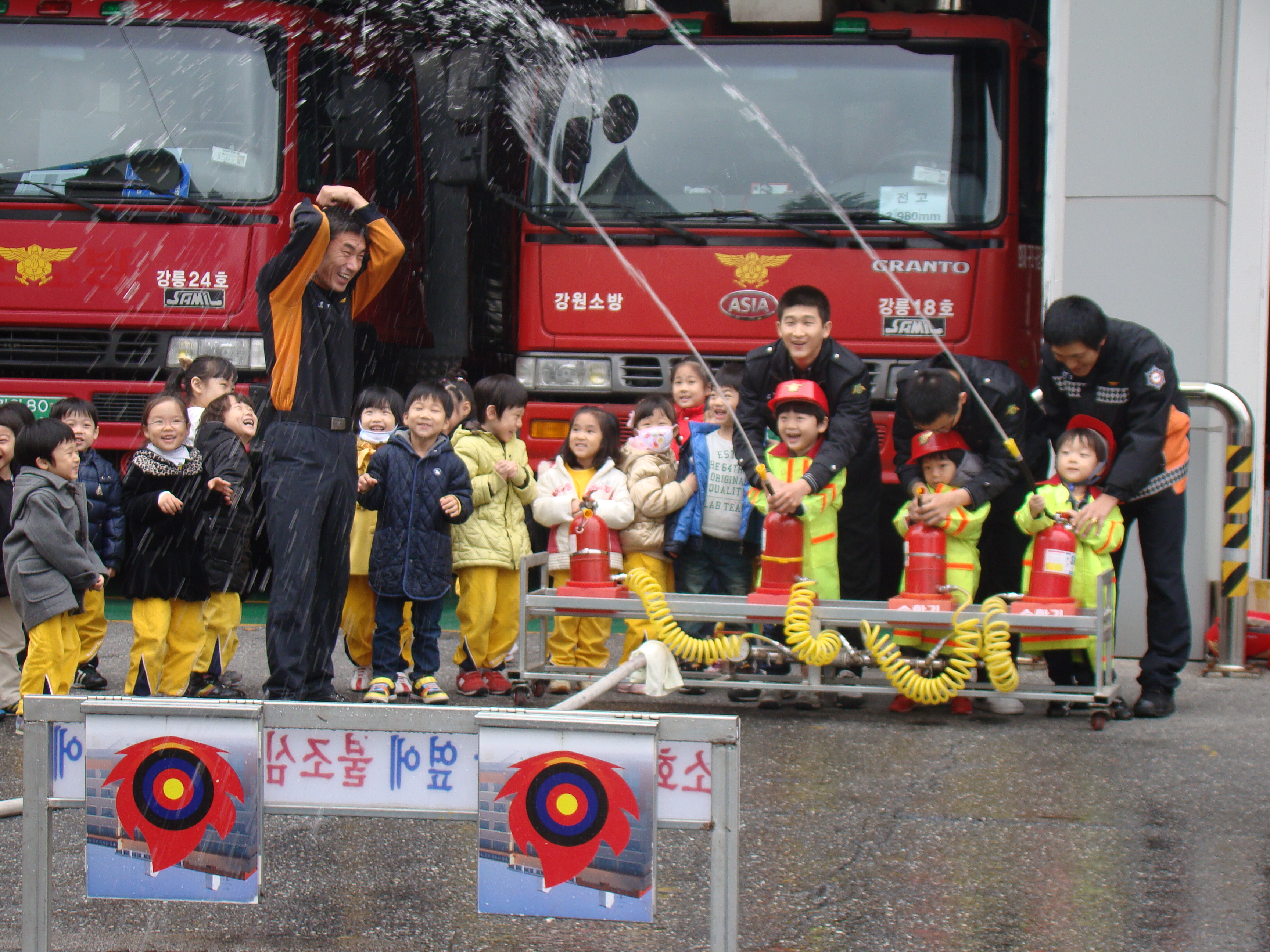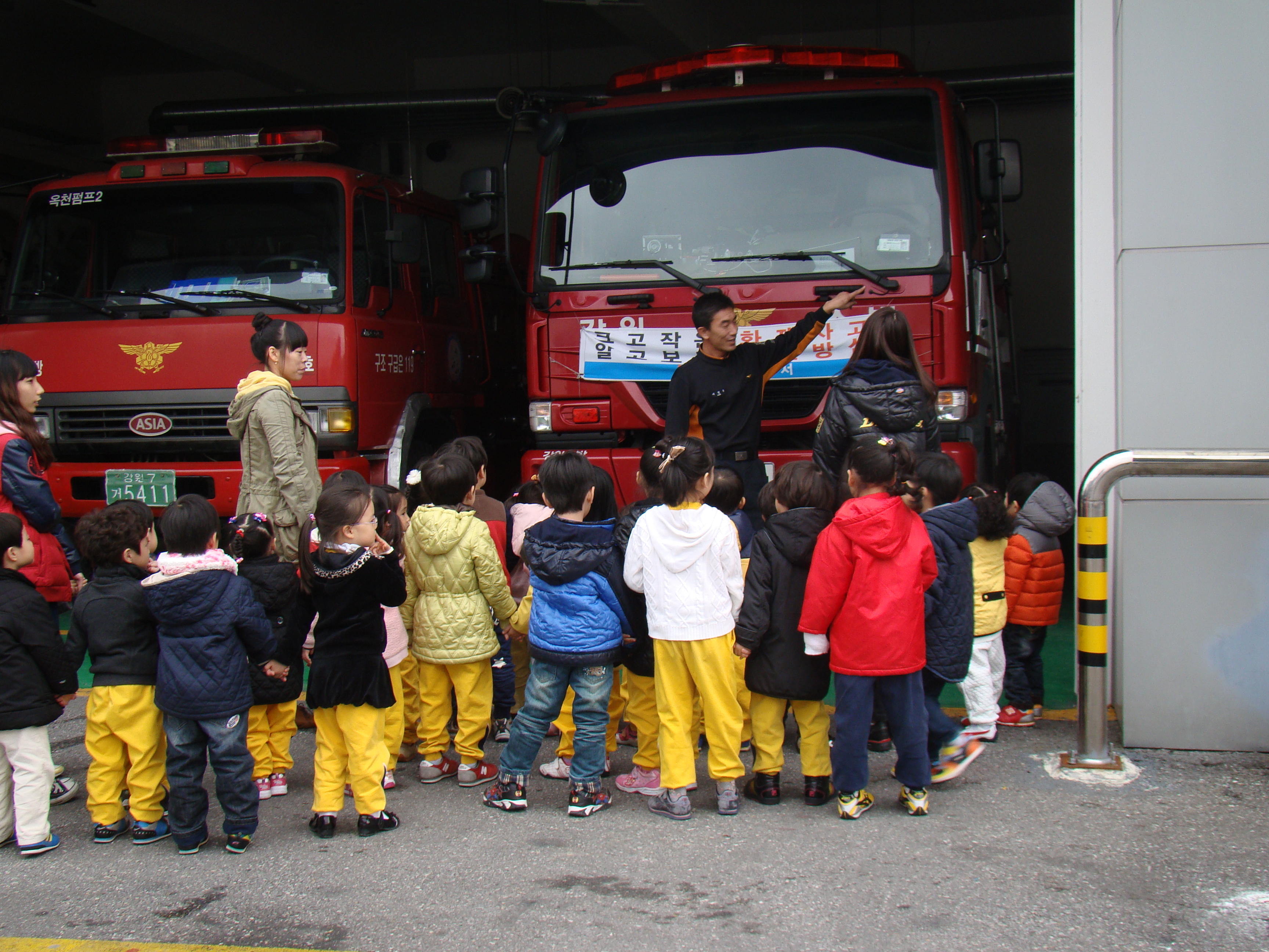 상지어린이집 원생 및 교사들을 대상으로 화재 대피요령, 소화기 사용법 등의