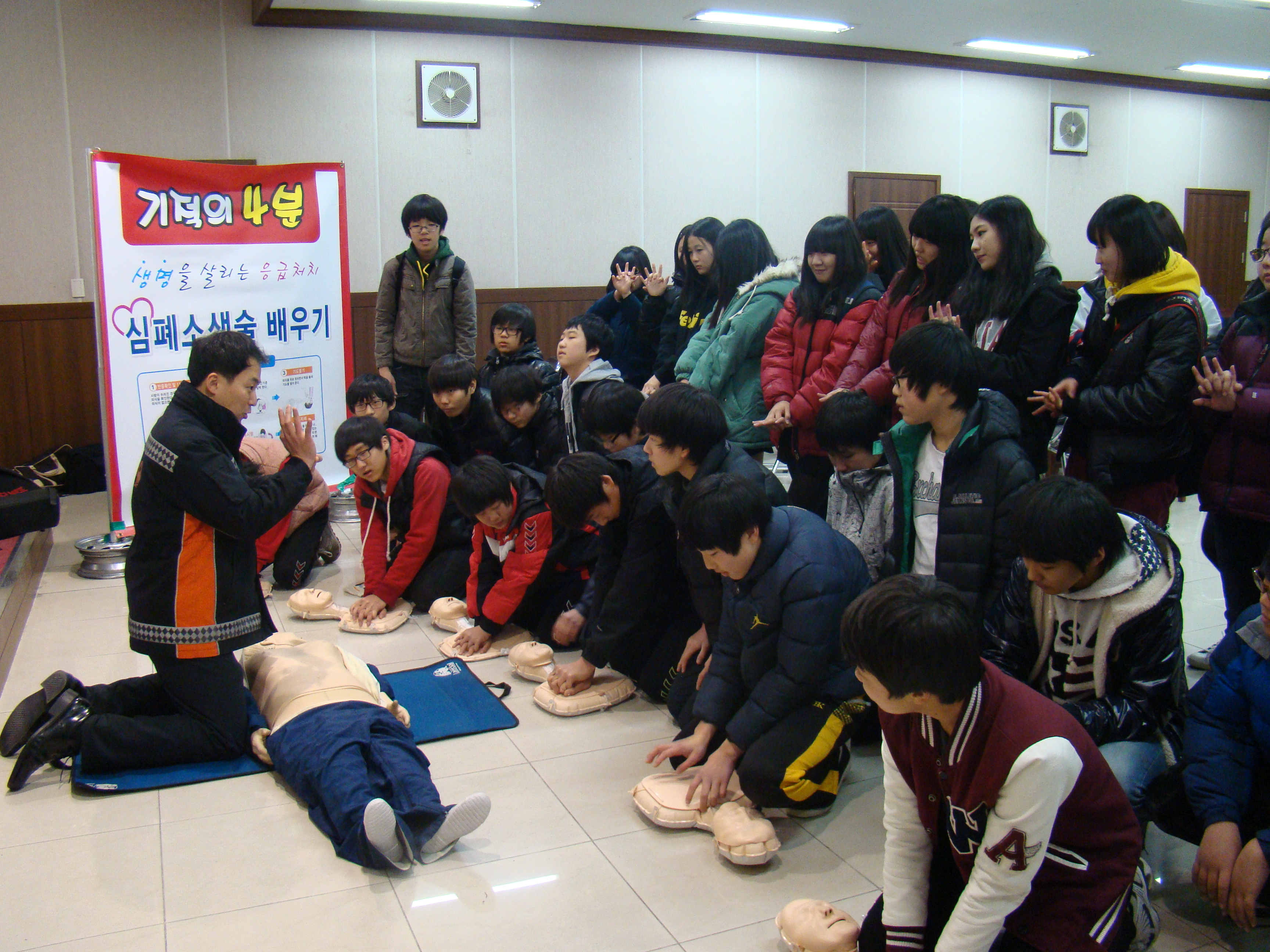 2011.12. 17(토) 14시 본서 회의실에서중학생 40여명을 대상으로 심폐소생술 교육을 실시하였습니다.