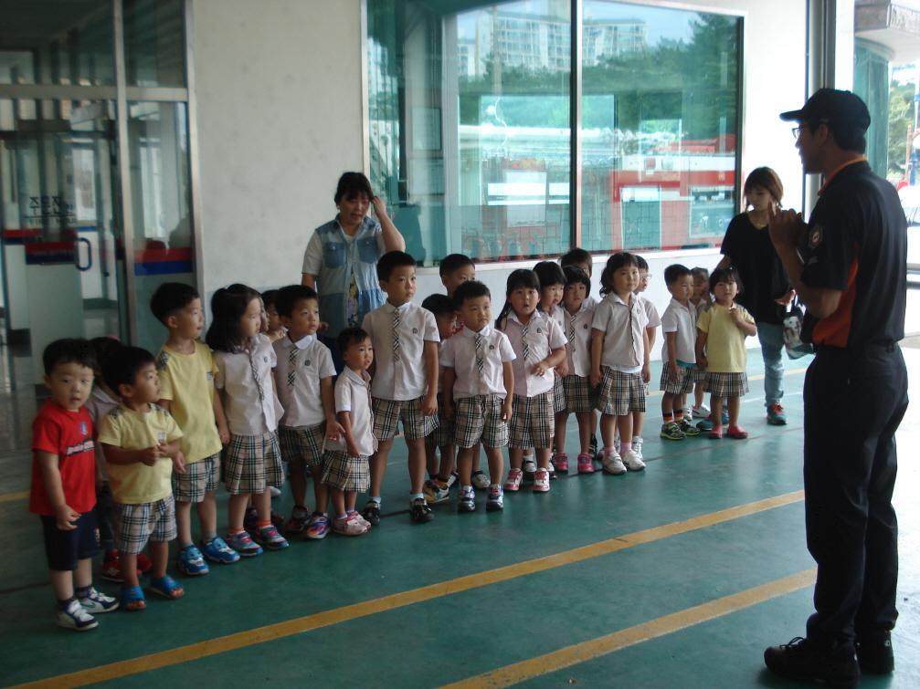 주문진119안전센터(센터장 박흥석)는 2012. 9. 12(수) 10시 사천진리어린이집 45명(원아41명, 인솔교사4명, 기타1명)을 대상으로 소화기 사용법 교육 및 물소화기 체험, 화재예방교육, 소방차량탑승, 개인안전장구체험 등 소방안전교육을 실시하였습니다.