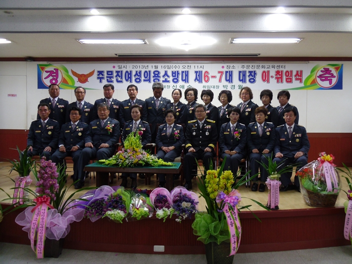 강릉소방서(서장 김남숙)는 2013. 1.16(수) 11:00~ 주문진문화교육센터에서 주문진여성의용소방대장강 이취임행사를 실시하였습니다.