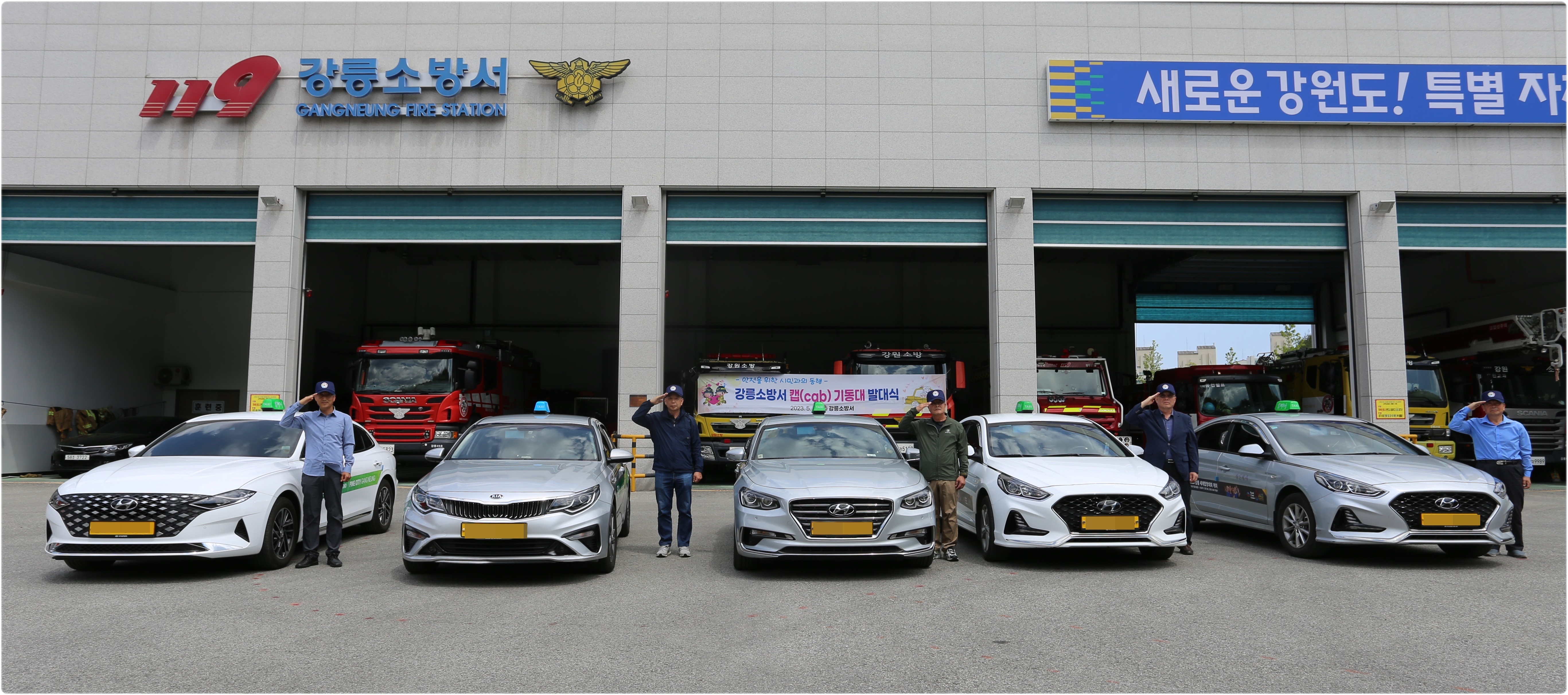 2023년 강릉소방서 특수시책의 하나로 퇴직 소방관 중 택시 영업을 하는 사람을 대원으로 캡(cab) 기동대를 구성하였으며,