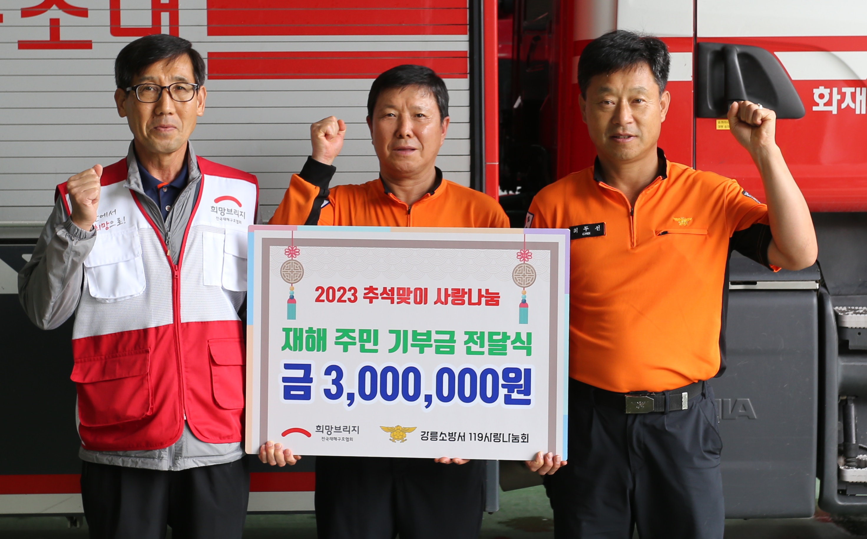 | 1227 | 강릉소방서119사랑나눔회 추석맞이 재해피해주민 성금 전달 | 강릉홍보 | 2023-09-20 | 532 | |