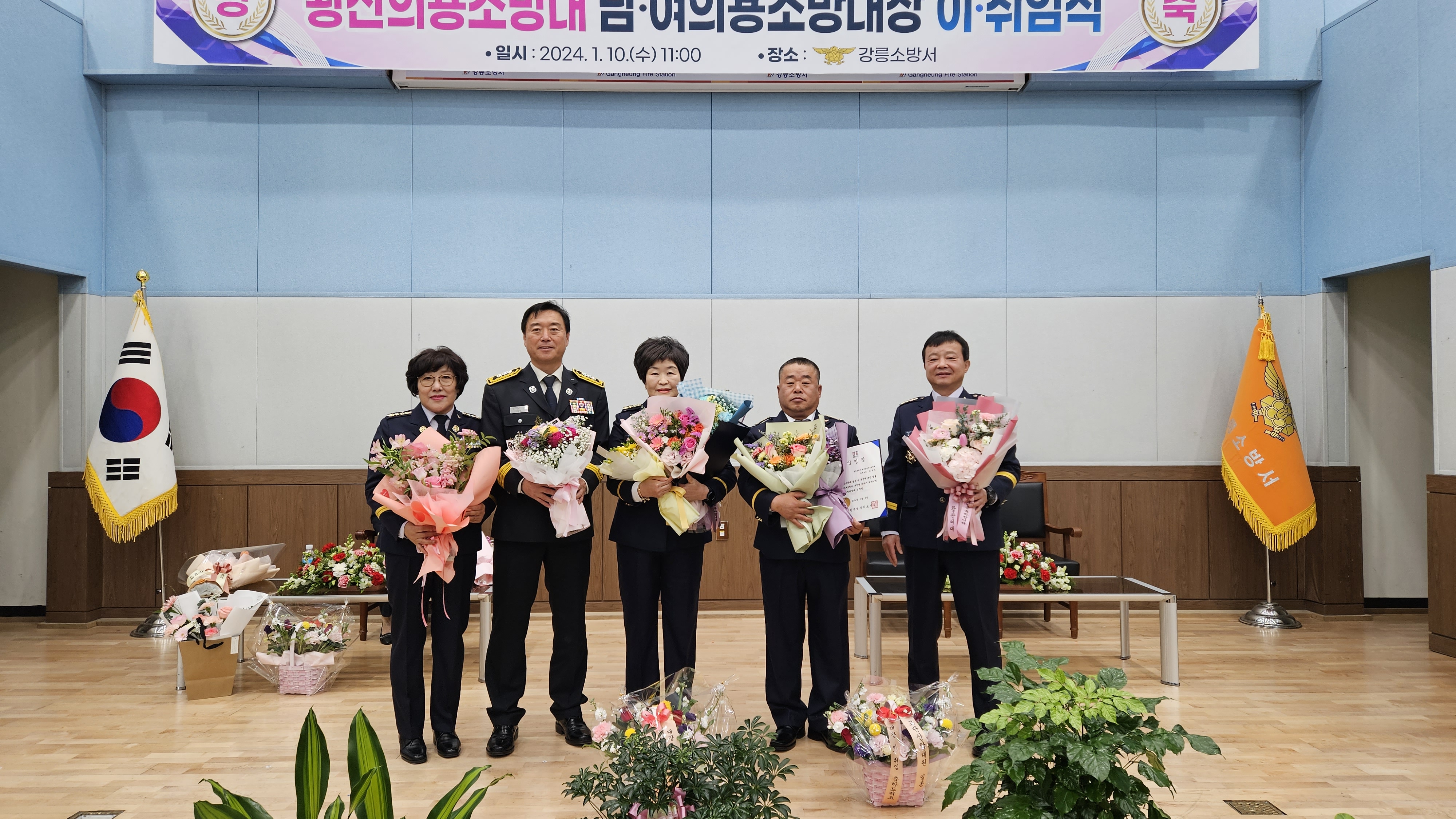 금일 강릉소방서 대회의실에서 왕산면 남녀의용소방대 대장 이 취임식 행사가 개최되었습니다.