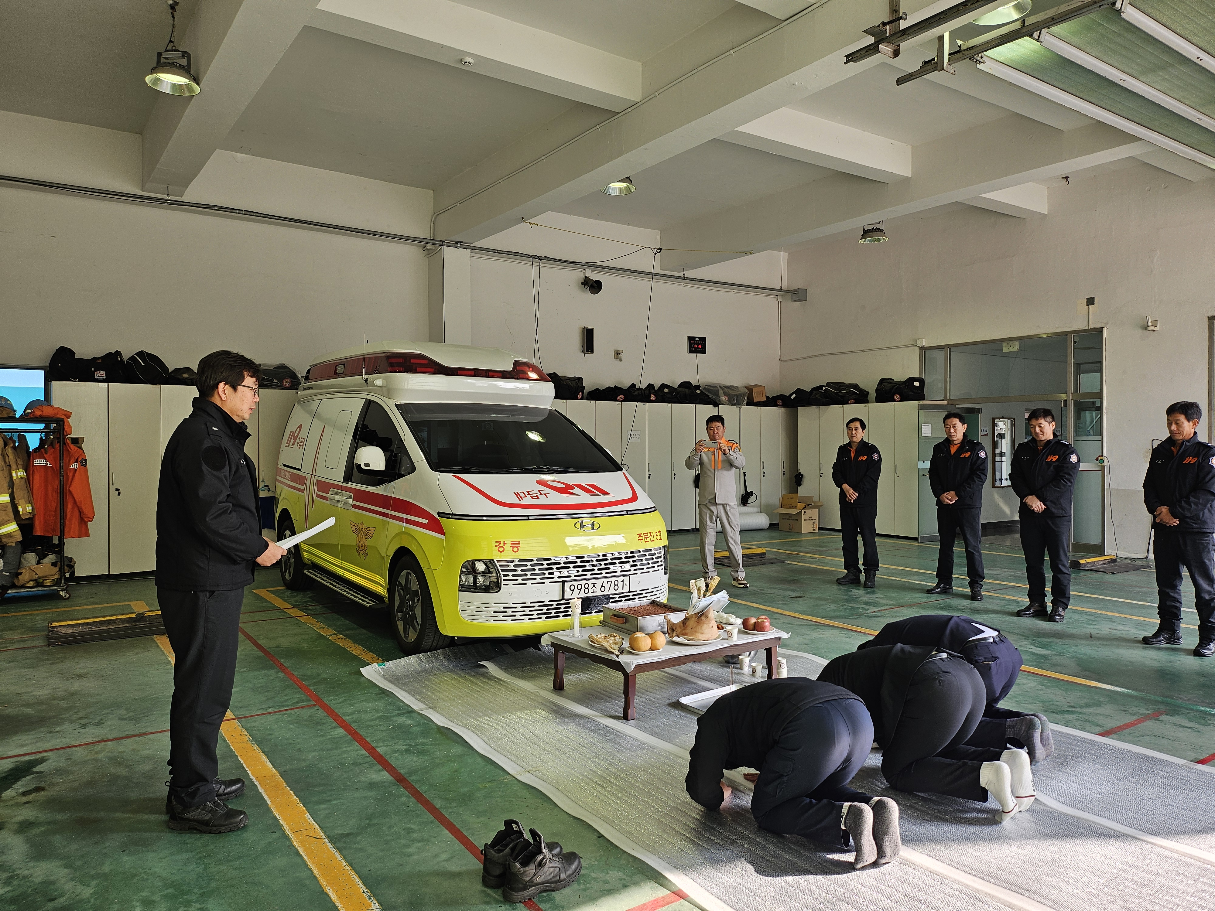 금일 강릉소방서 주문진119안ㅇ전센터에 신규 구급차량 배치에 따른 안전기원제가 실시되었습니다.