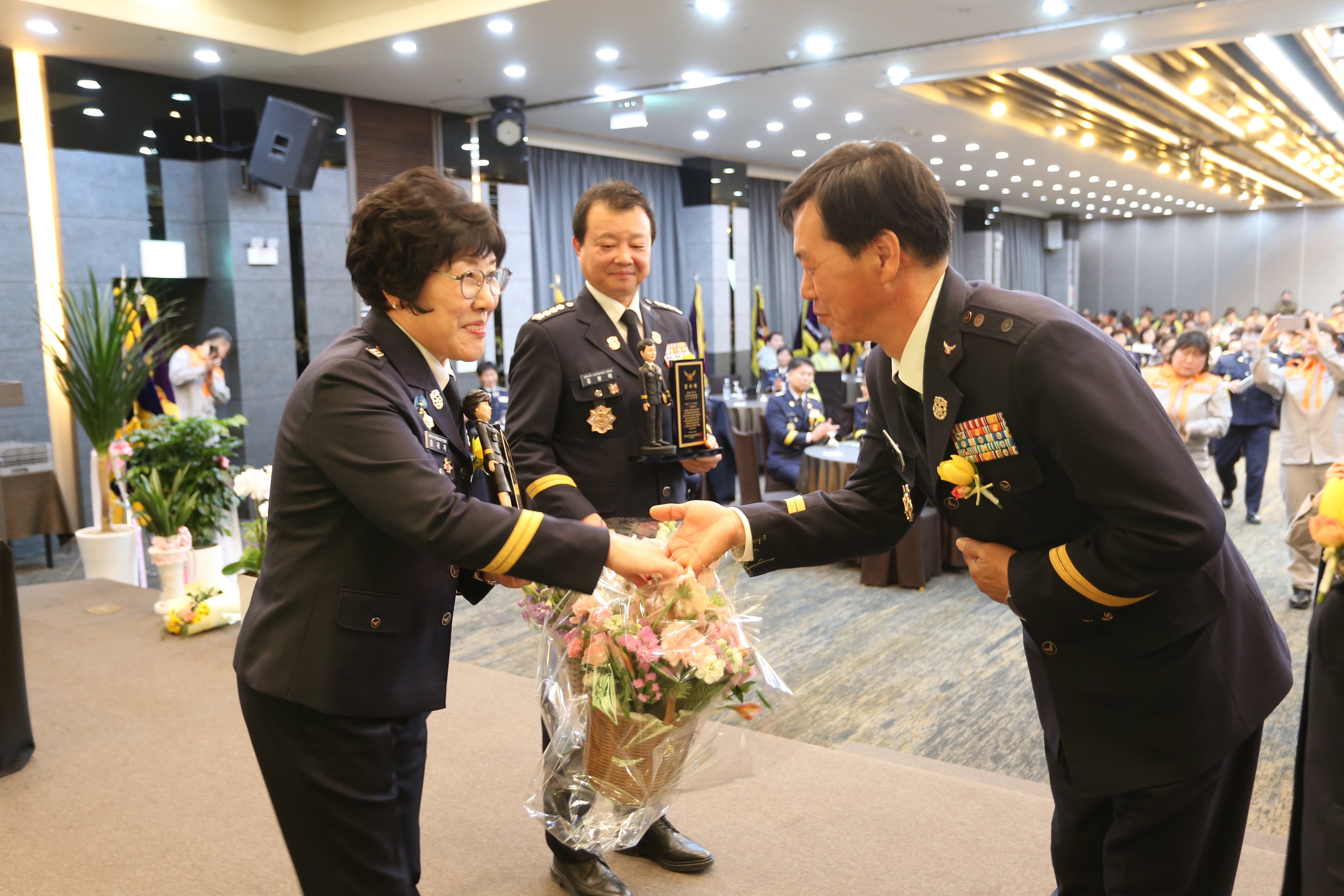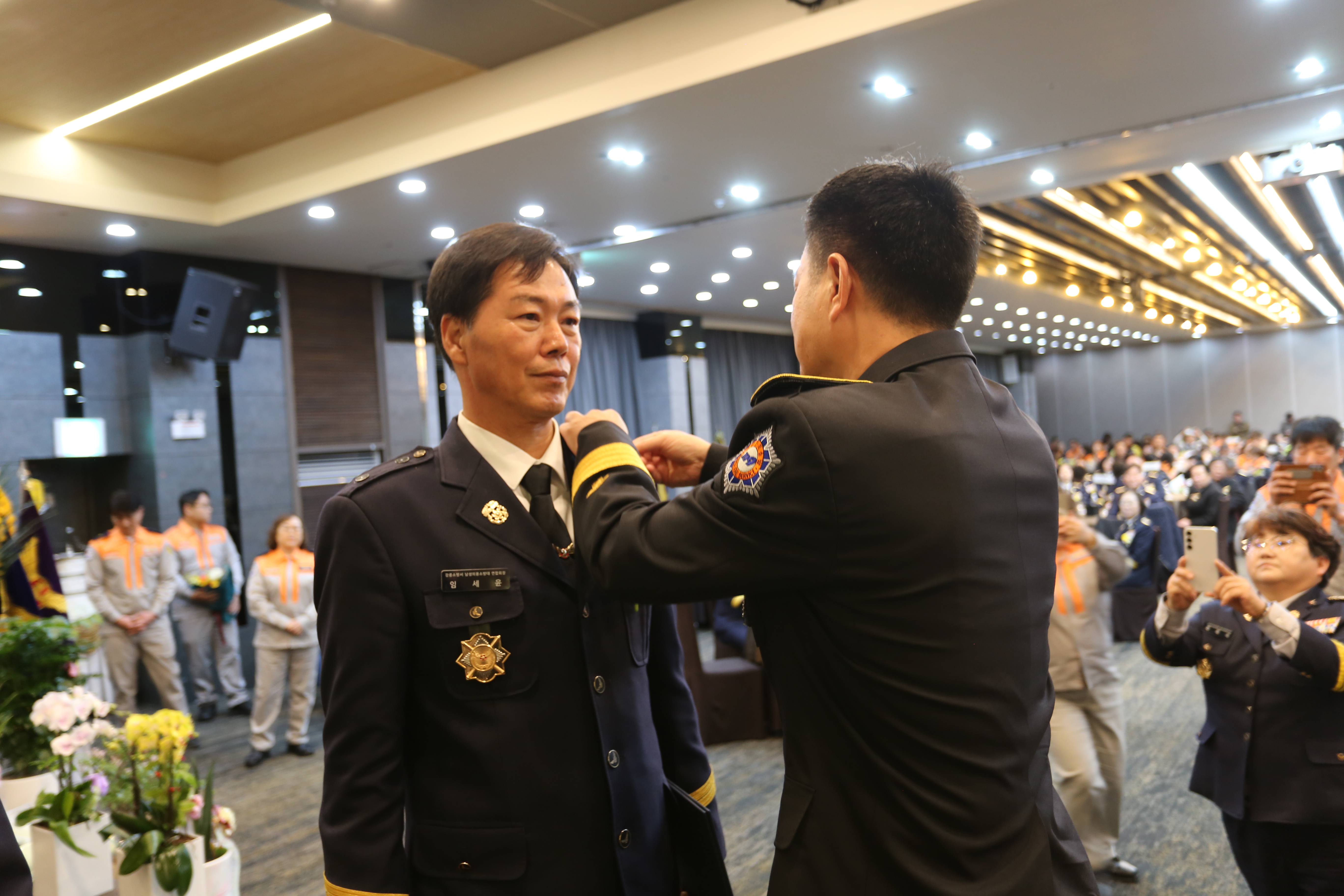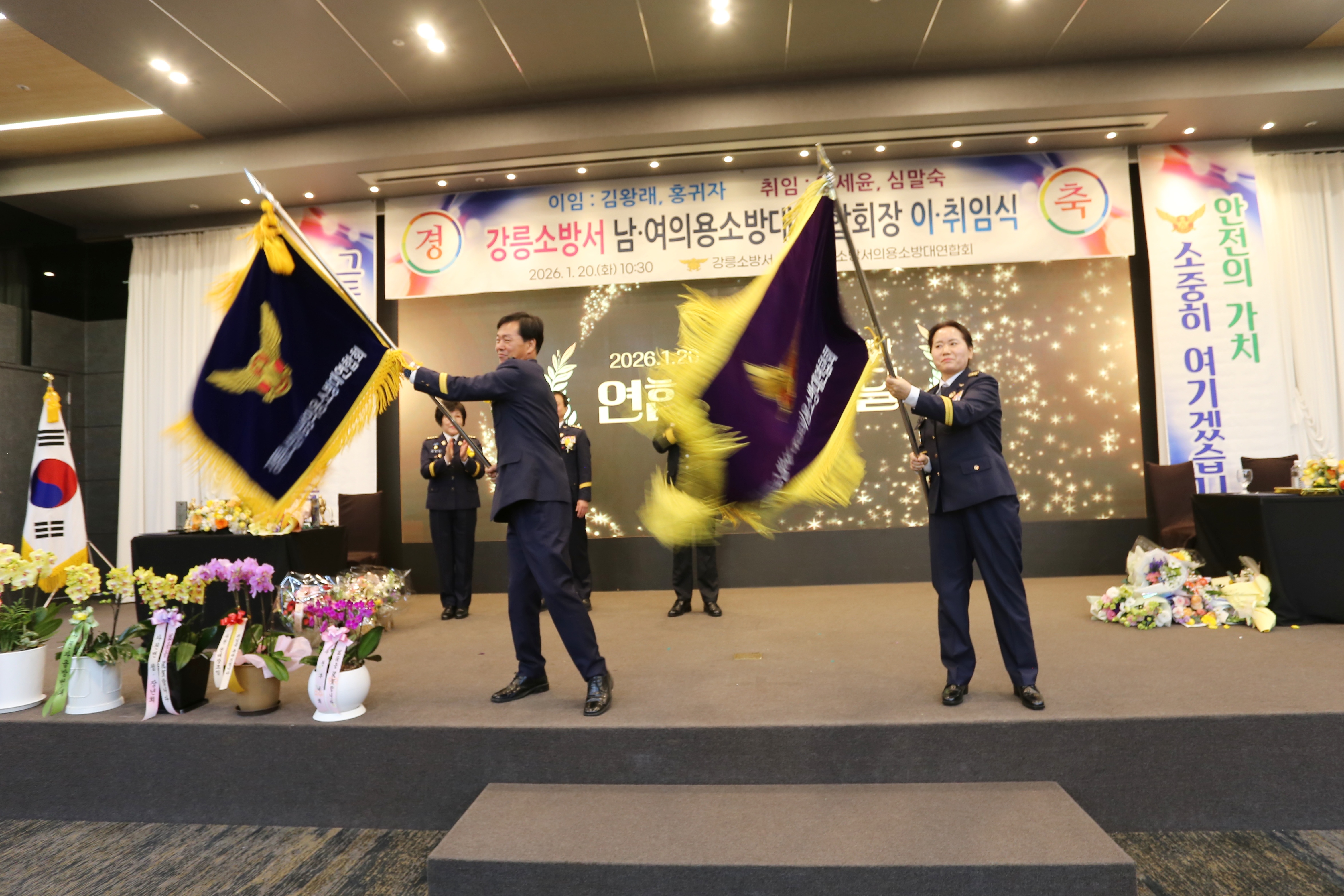 의용소방대 운영 활성화와 지역사회 발전을 위해 헌신한 전임 김왕래, 홍귀자 회장의 명예로운 이임을 송공하고, 새롭게 취임한 임세윤, 심말숙 회장을 축하하기 위해 마련됐습니다.