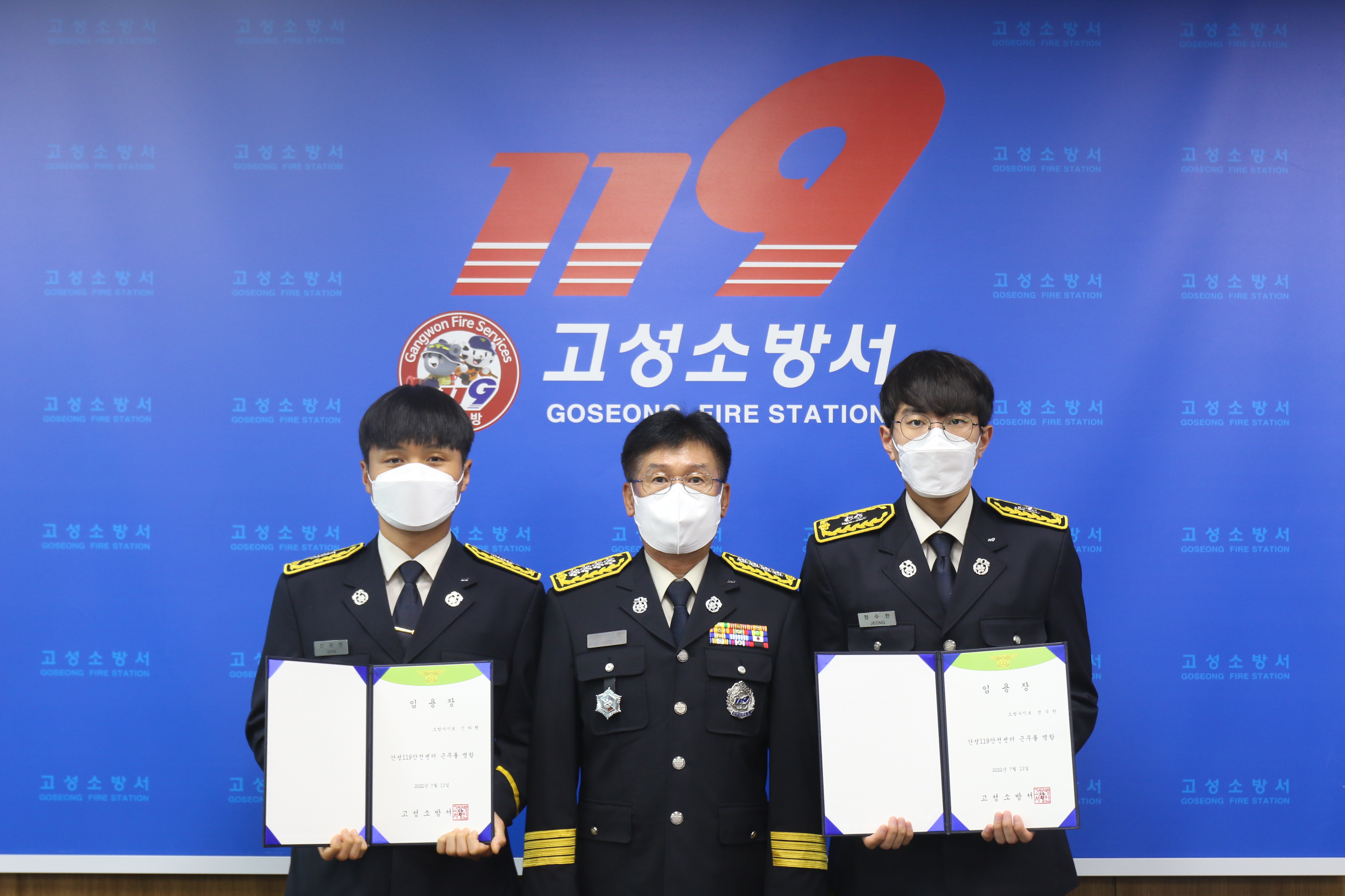 이번 신규 임용된 2명은 간성119안전센터에 근무를 명받아 실무 적응훈련을 받고 군민의 생명ㆍ신체ㆍ재산 등을 보호하는 업무를 맡는다.