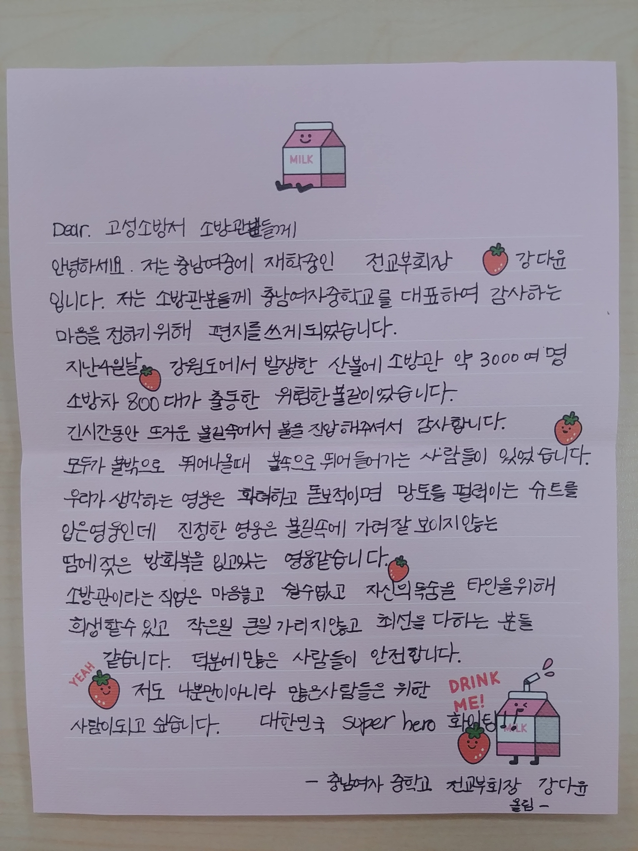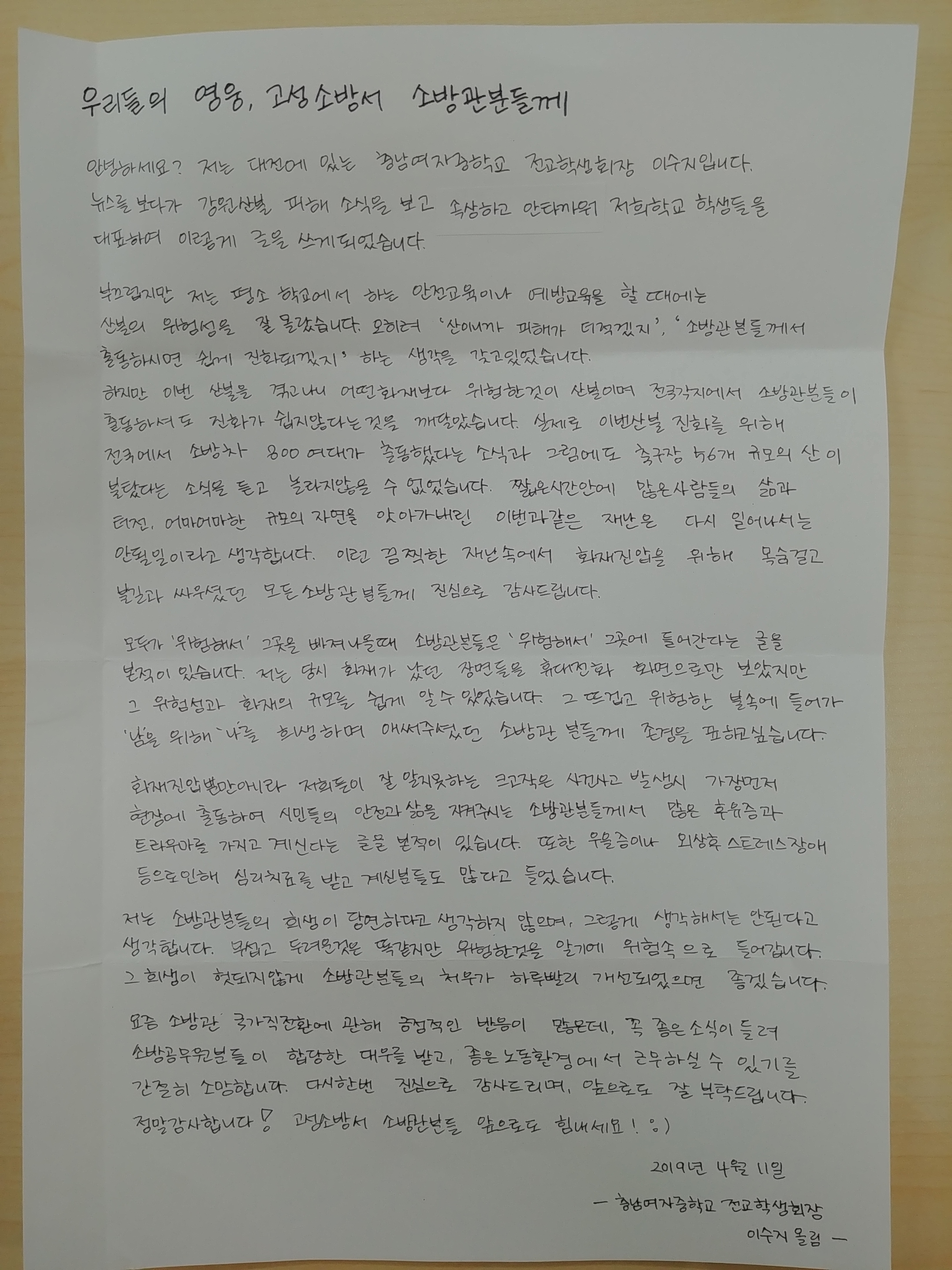 | 84 | 충남여자중학교 학생회 감사편지 보내와 | 예방홍보 | 2019-04-19 | 1222 | |