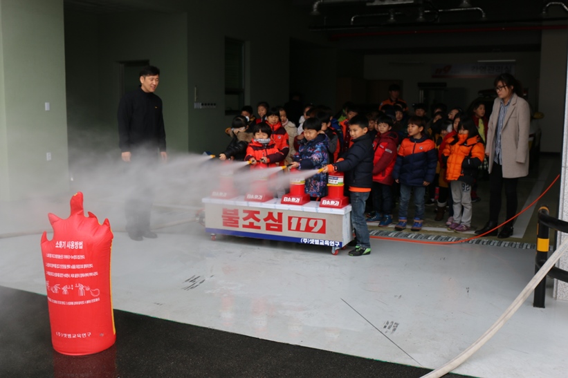 물소화기 체험과 화재대피훈련