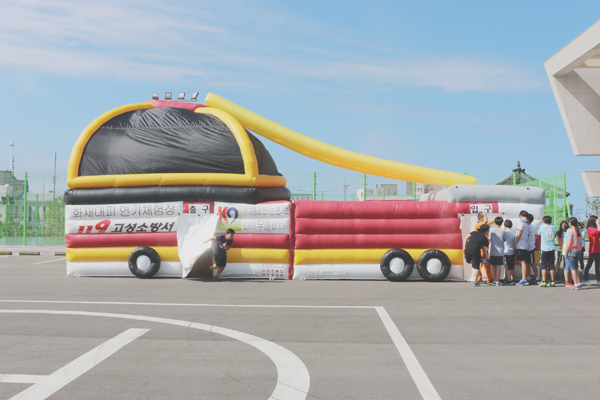 7월 18일 고성소방서 소속 한국119소년단 4개대 87명의 아이들이 모여 소방안전체험을 했습니다.