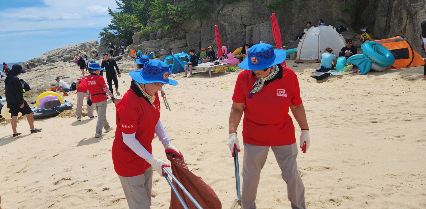 강원 고성의용소방대 연합회, 송지호 해수욕장 환경정화 활동 실시